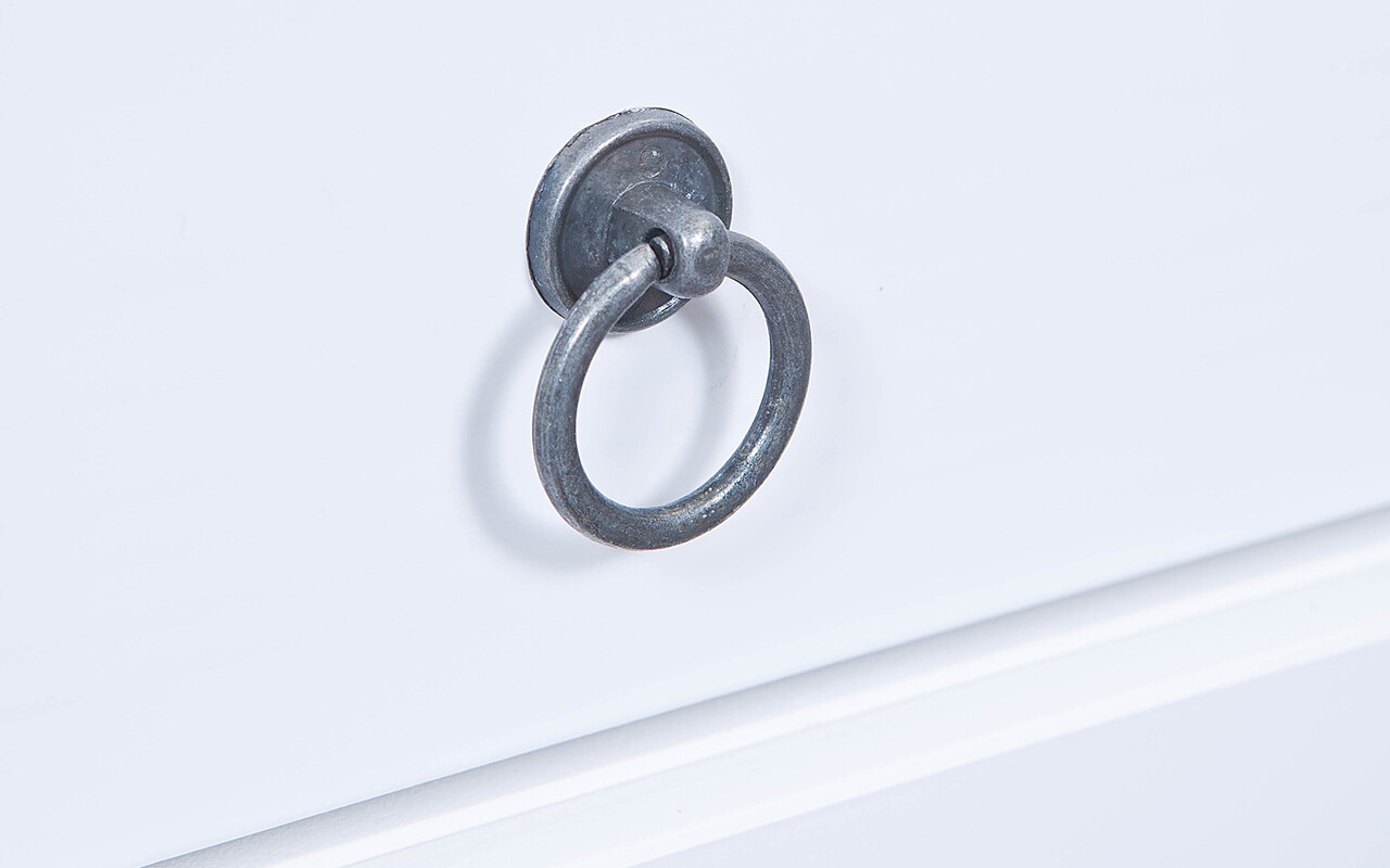 Lemn masiv de pin (pin parfumat), lacuit in alb. Fibra este inca usor vizibila, evidentiind caracterul natural al lemnului. Lemnul de plantatie sustenabil, ecologic si organic ofera caldura, confort si o atmosfera primitoare. Experimentati senzatia pura a lemnului natural autentic.