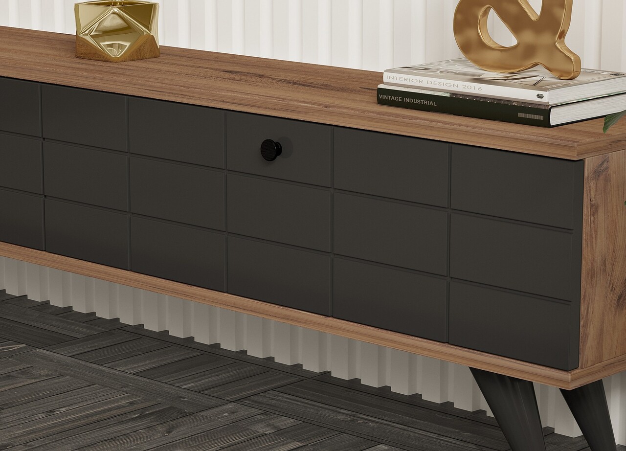 Comoda TV, Puqa Design, Alberi, 160x35x25 cm, PAL, Pin Atlantic / Antracit