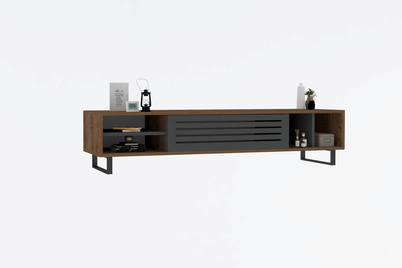 Comoda TV, Puqa Design, Eray, 160x35x40 cm, PAL, Nuc / Antracit