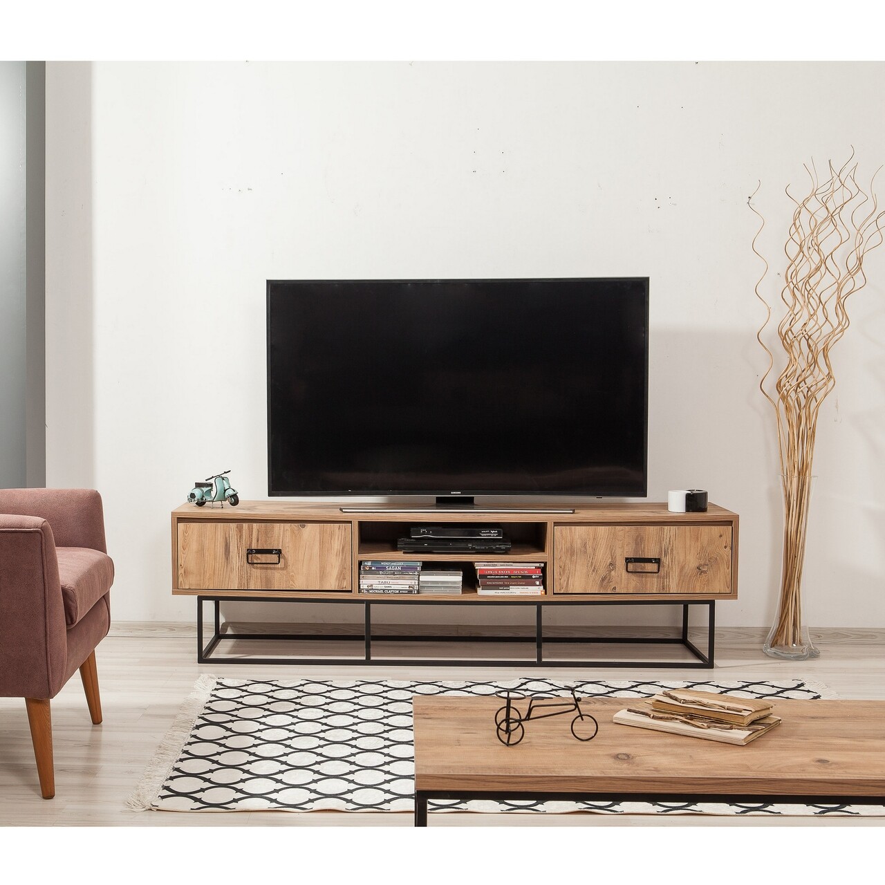 Comoda TV Quantum, Sapphire, 160x40x50 cm, maro/negru