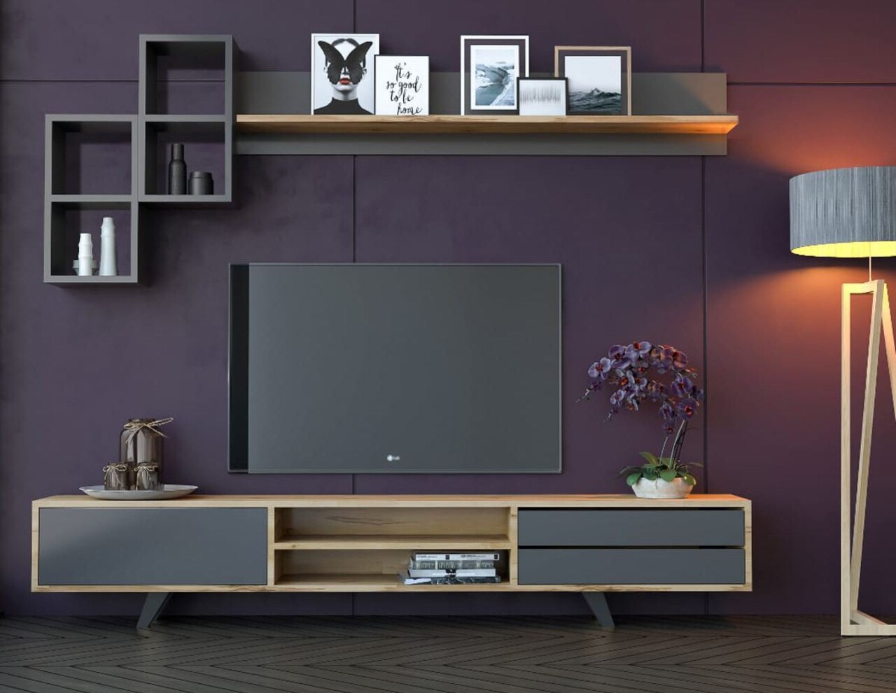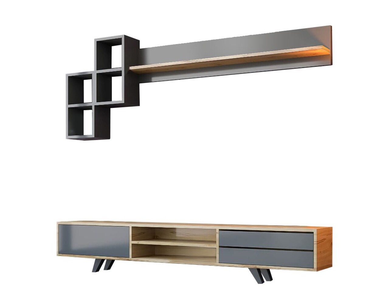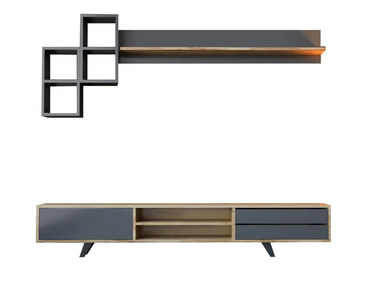 Comoda TV, Rabi, Rb-046, 180x45x40 cm, PAL, Antracit / Stejar