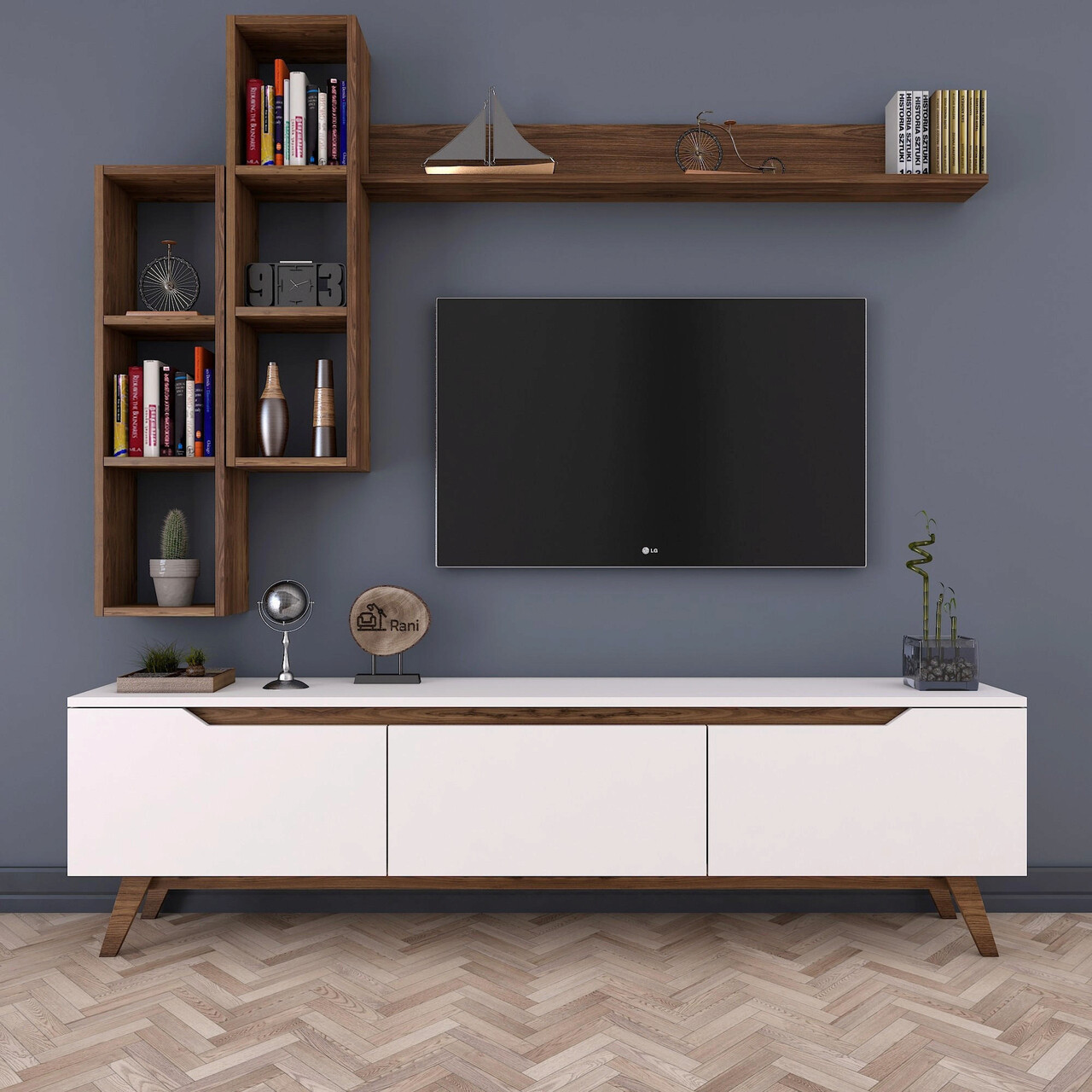 Comoda TV, Rani, M16, 180x48 cm, PAL, Alb/Maro