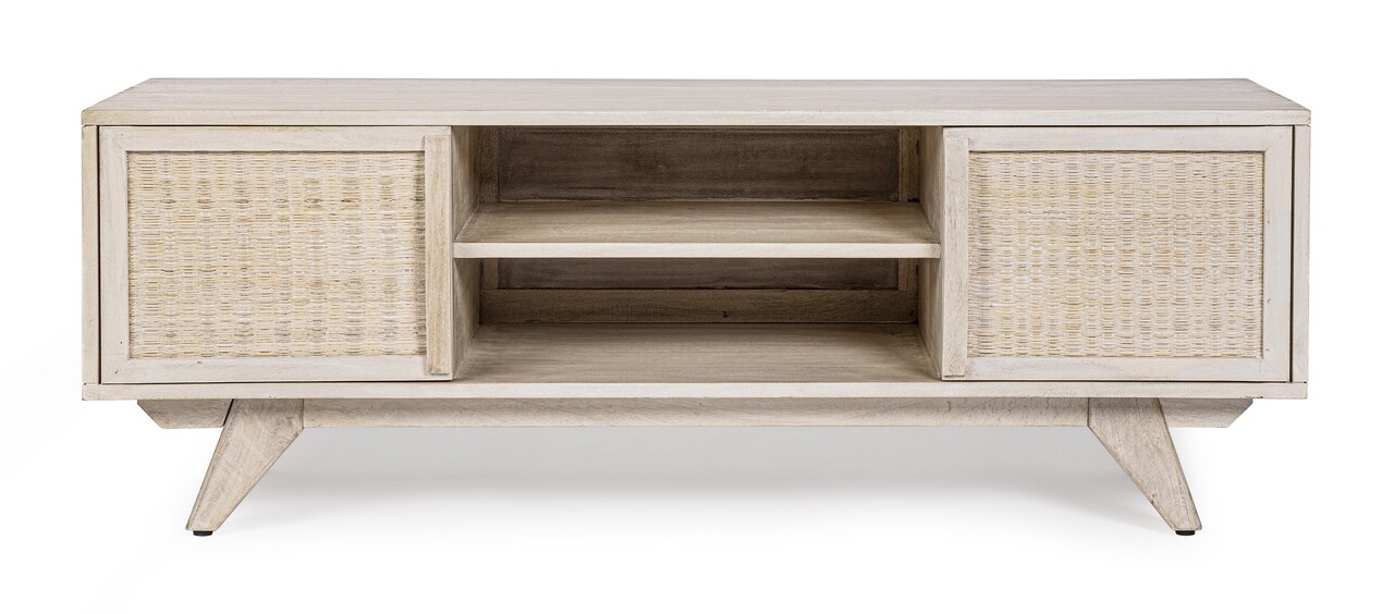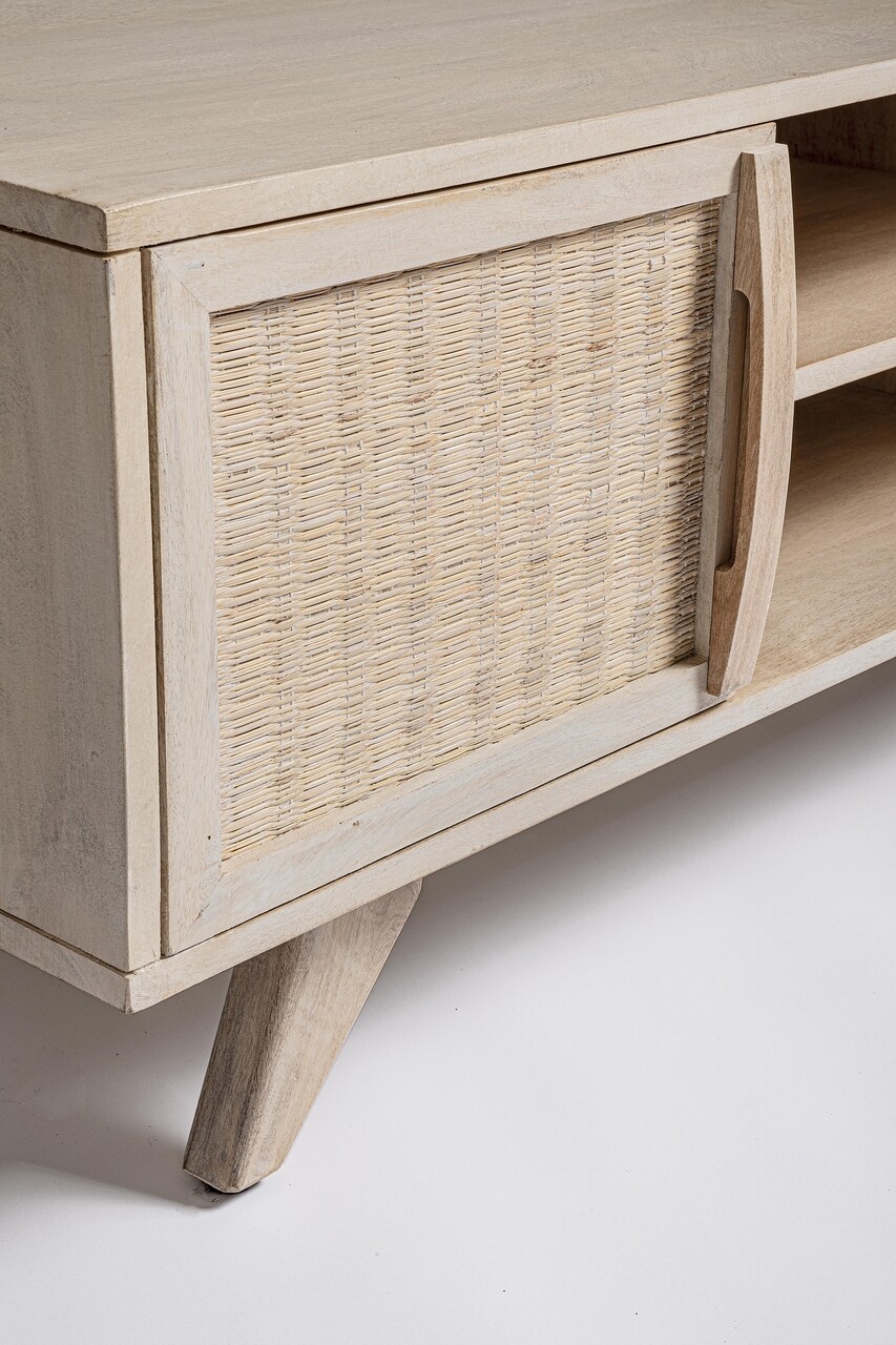 Comoda TV Sahana, Bizzotto, 128 x 40 x 45 cm, lemn de mango/ratan