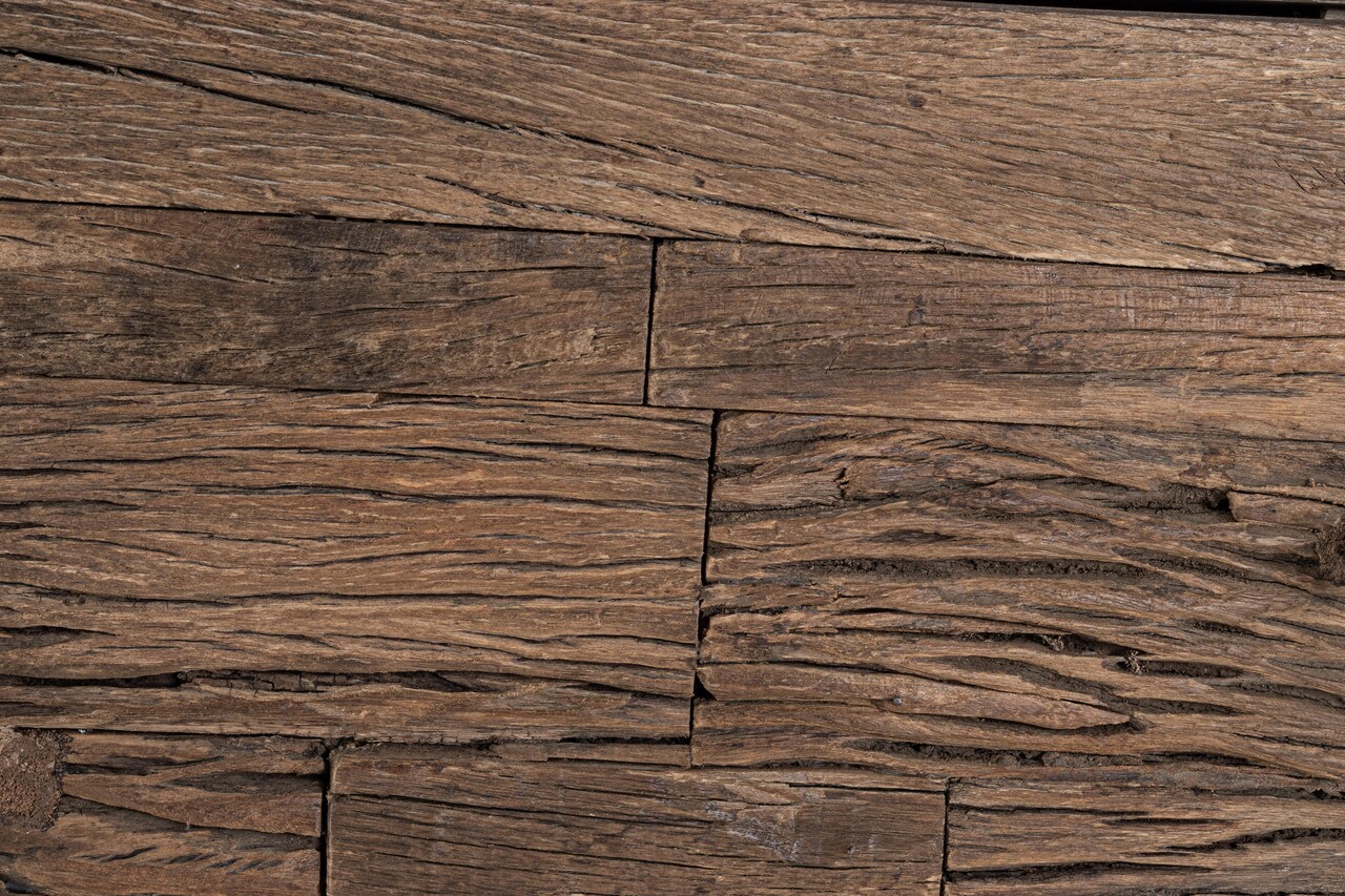 Elementul din lemn reciclat se caracterizeaza prin prezenta unor dibluri din lemn de diferite specii si culori. Eventualele crapaturi, fisuri sau imperfectiuni, care se pot de asemenea genera in timp, sunt caracteristici ale acestui material si fac ca fiecare piesa sa fie unica si originala.