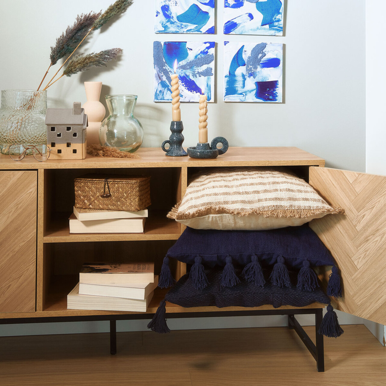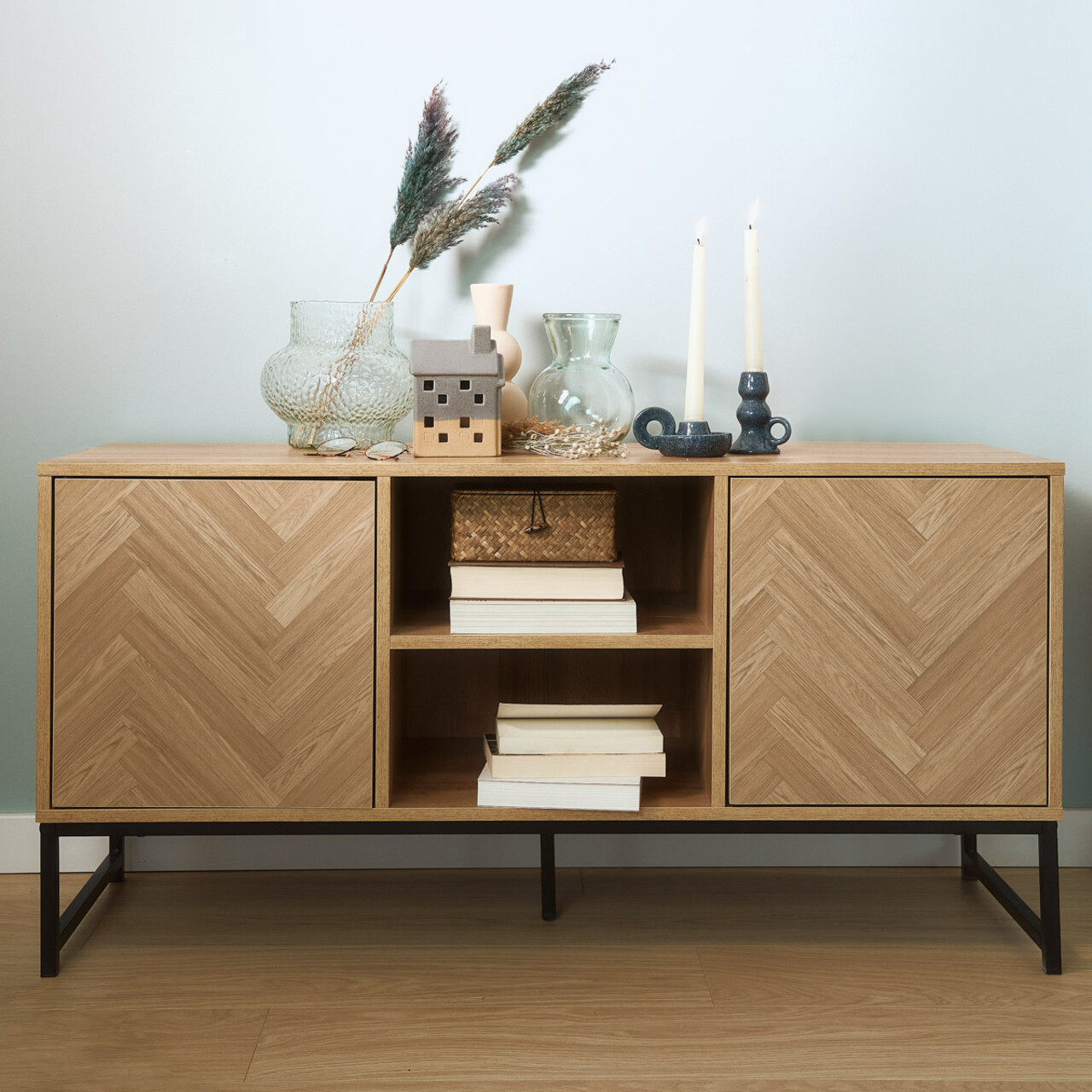 Comoda TV Swen, Homla, 120x38x60 cm, MDF/metal, natur