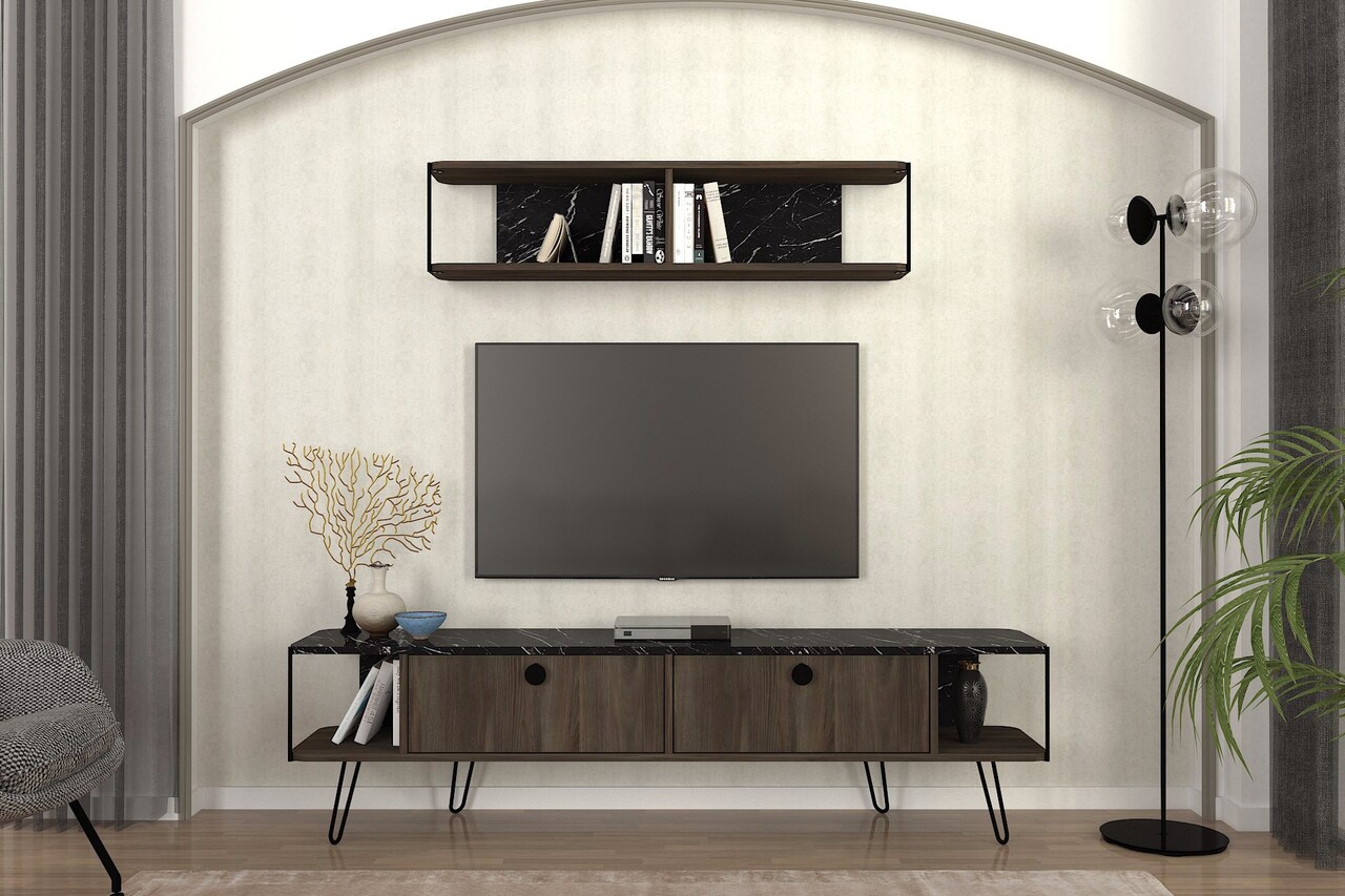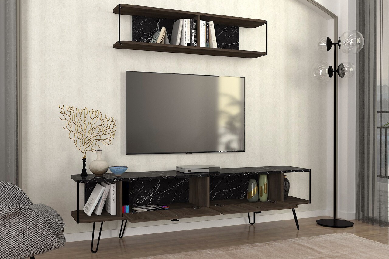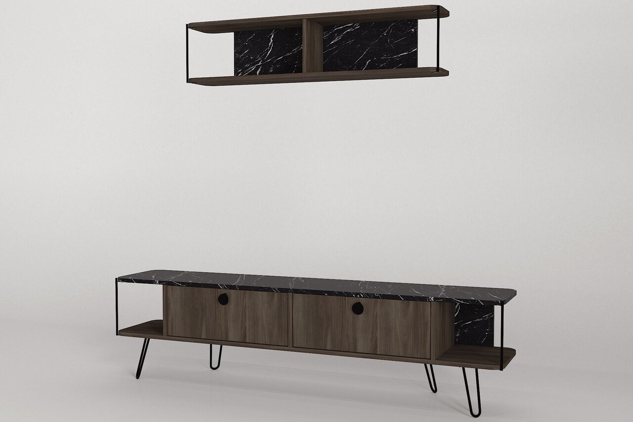 Comoda TV, Tera Home, Zoey, 180x47.2x35 cm, PAL, Marmură/Maro