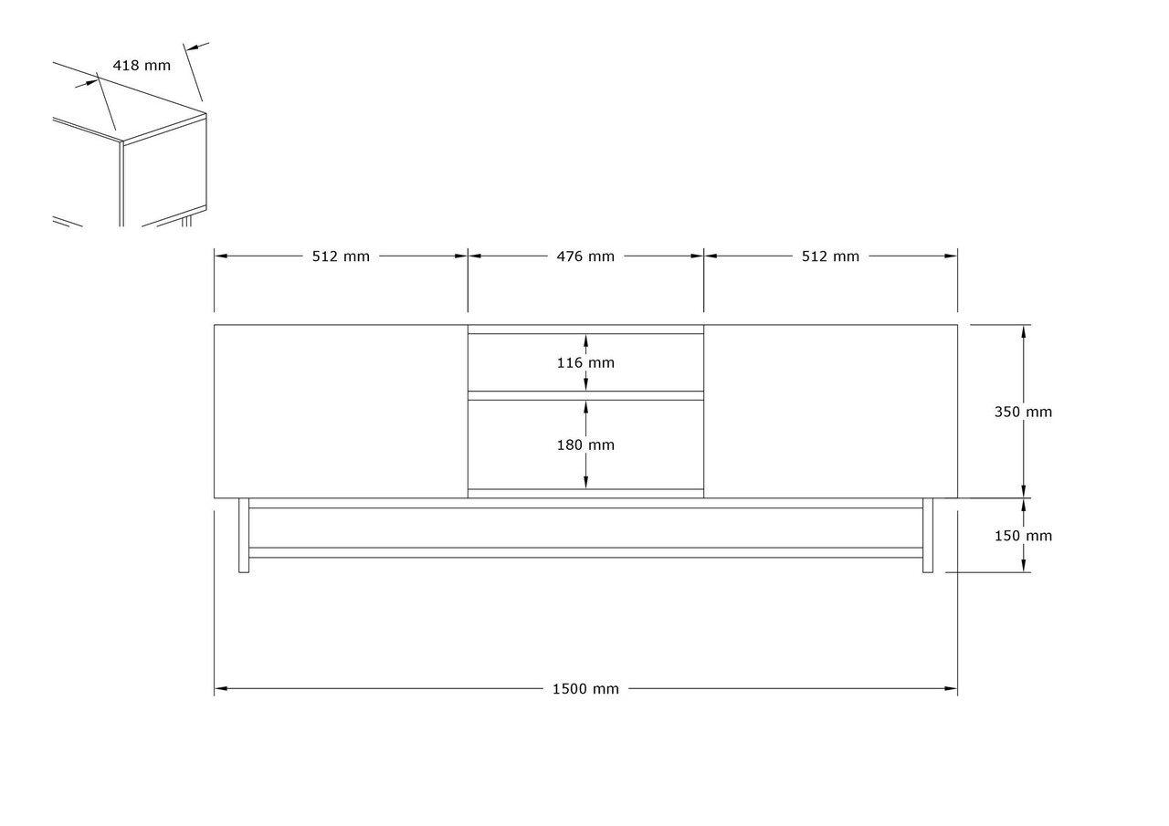 Comoda TV Tugi, Puqa Design, 150x36.8x50 cm, alb