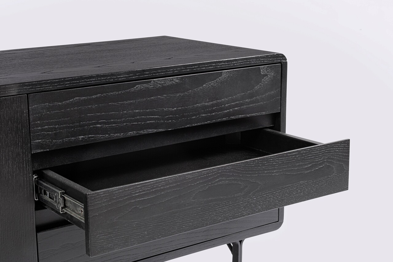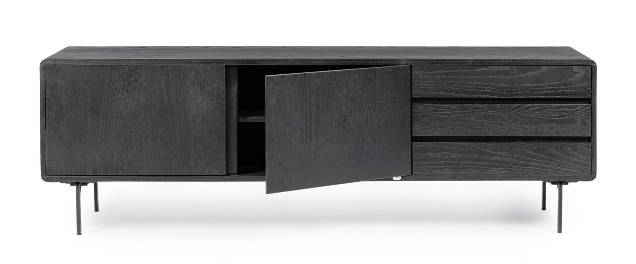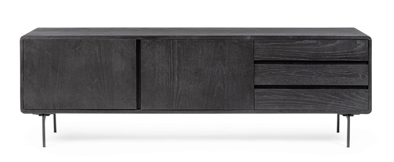 Comoda TV Widald, Bizzotto, 160 x 40 x 50 cm, MDF/furnir din lemn de frasin, negru