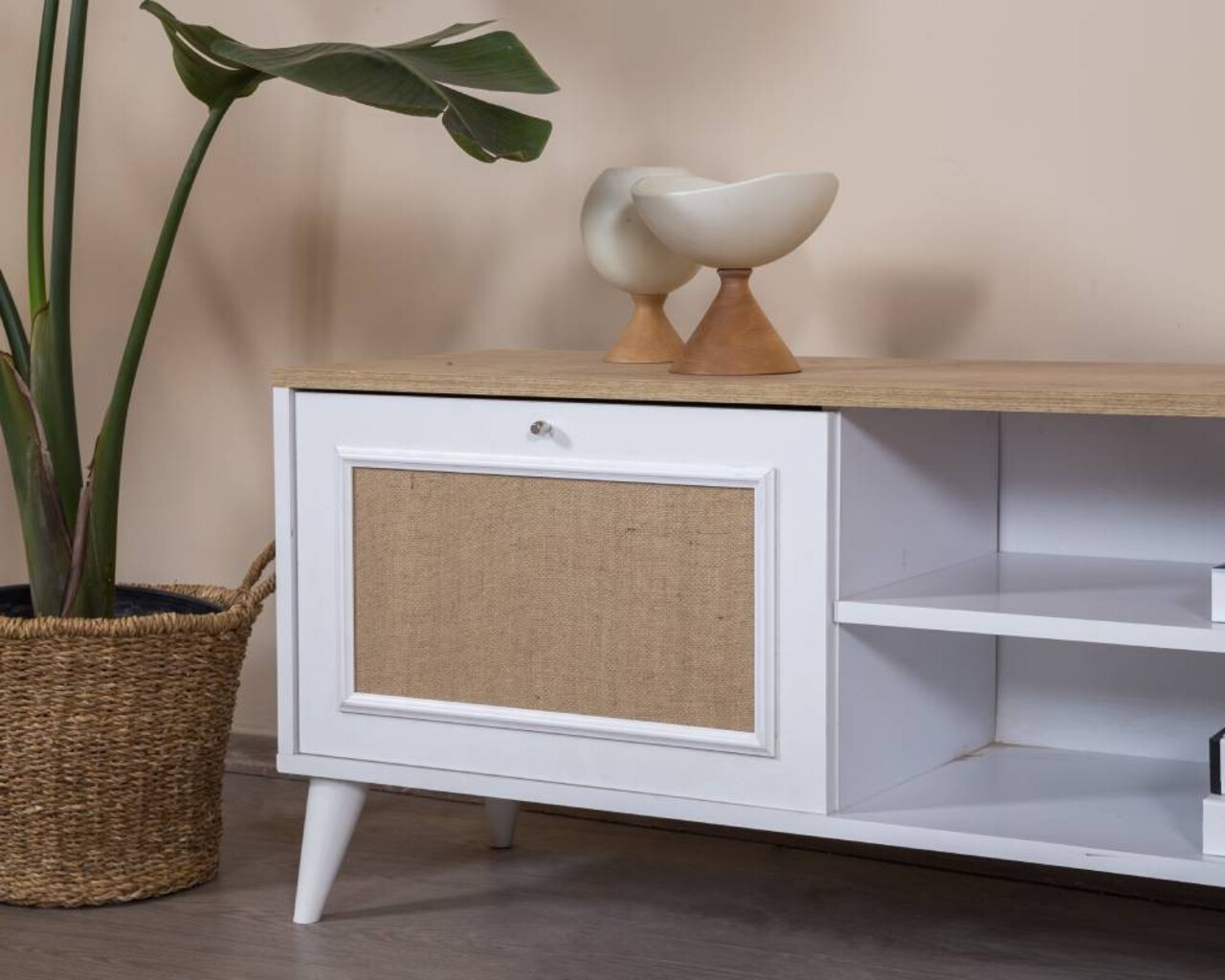 Comoda TV, Wolina, Mount, 55x180x41 cm, MDF , Alb / Stejar