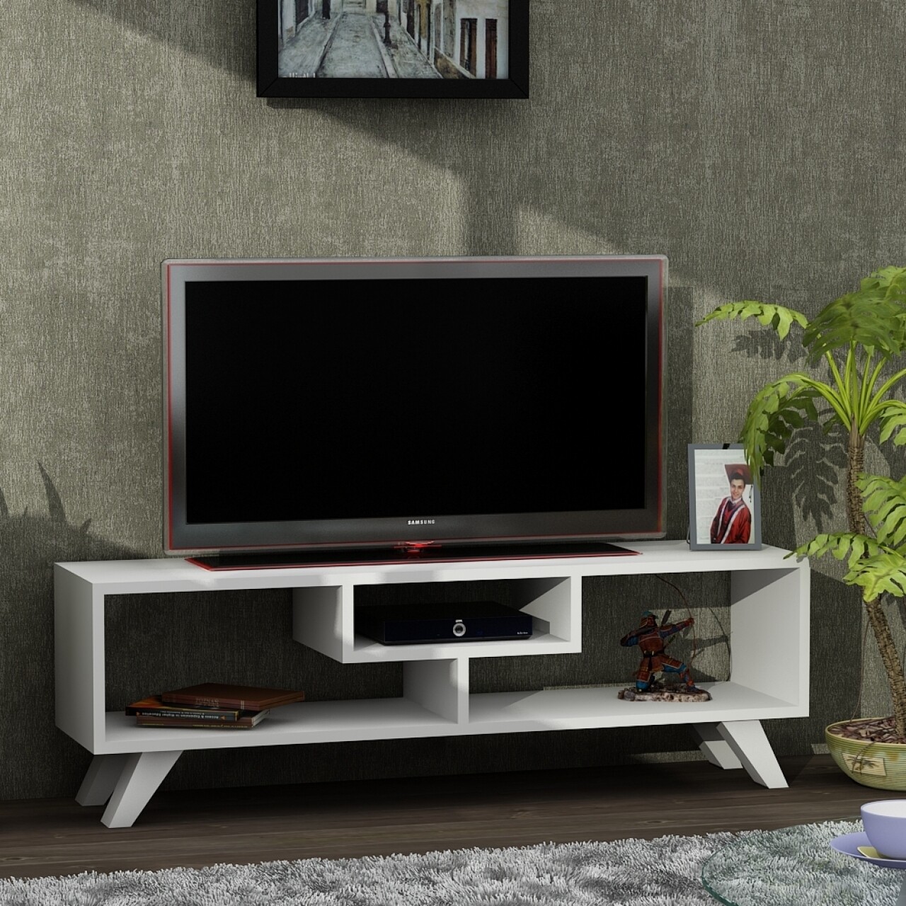 Comoda TV, Wooden Art, Jordon White, 120x38.6x29.5 cm