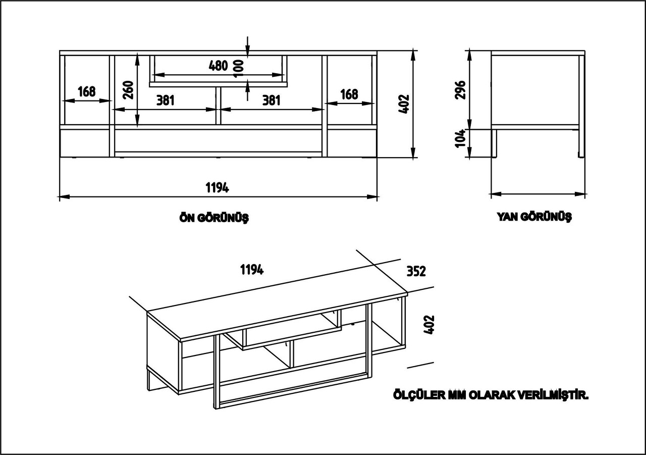 Comoda TV, Zena Home, Asal (120), PAL, Alb / Negru / Stejar