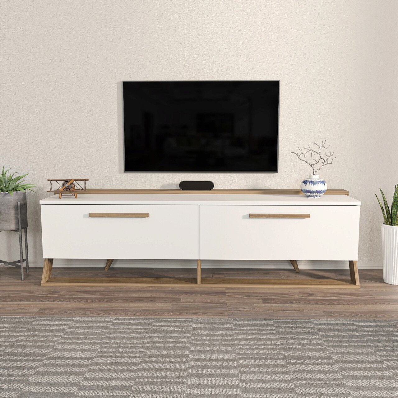 Comoda TV, Zena Home, Astrid, PAL, Alb/Maro