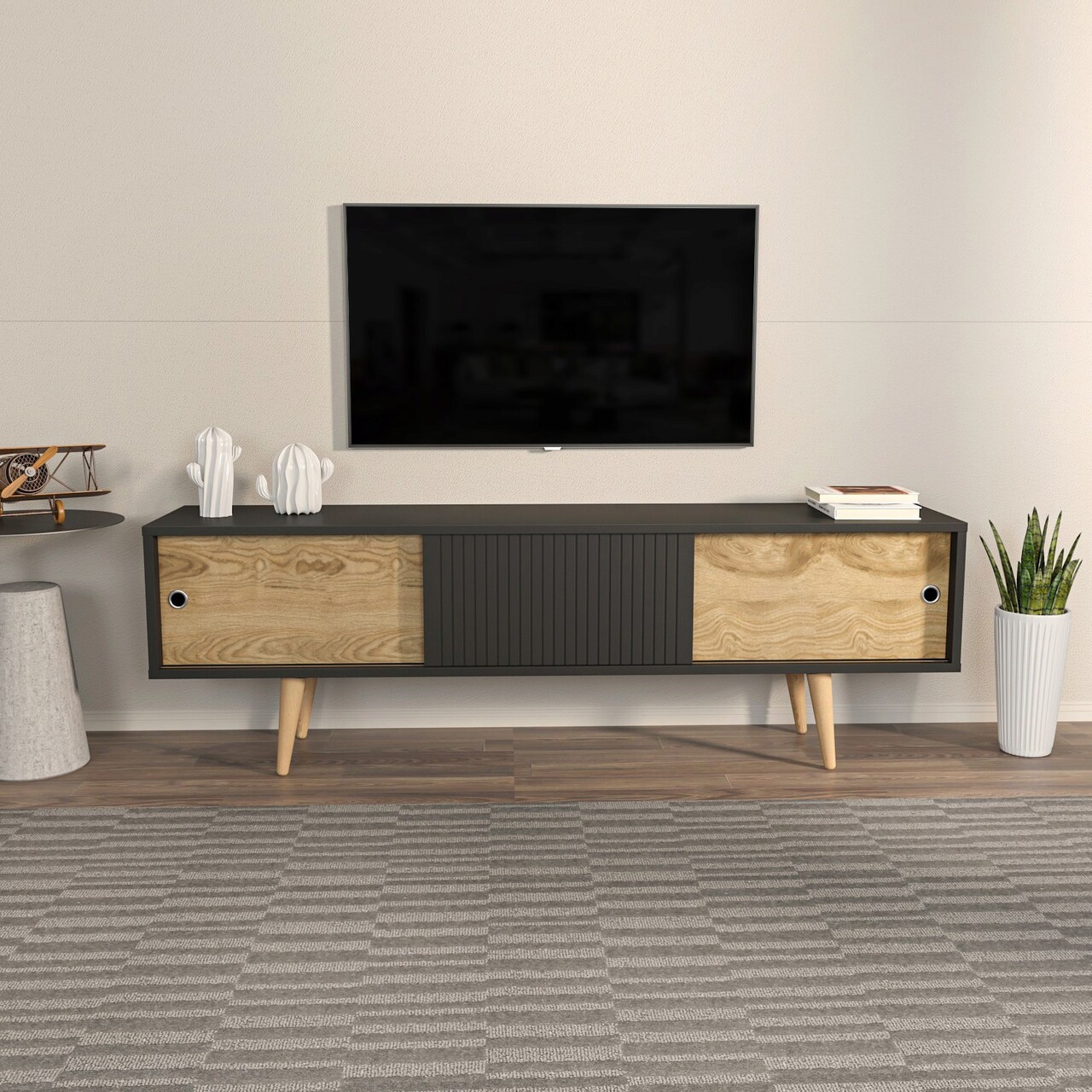 Comoda TV, Zena Home, Ecrin, 160x45x34 cm, PAL, Antracit / Stejar
