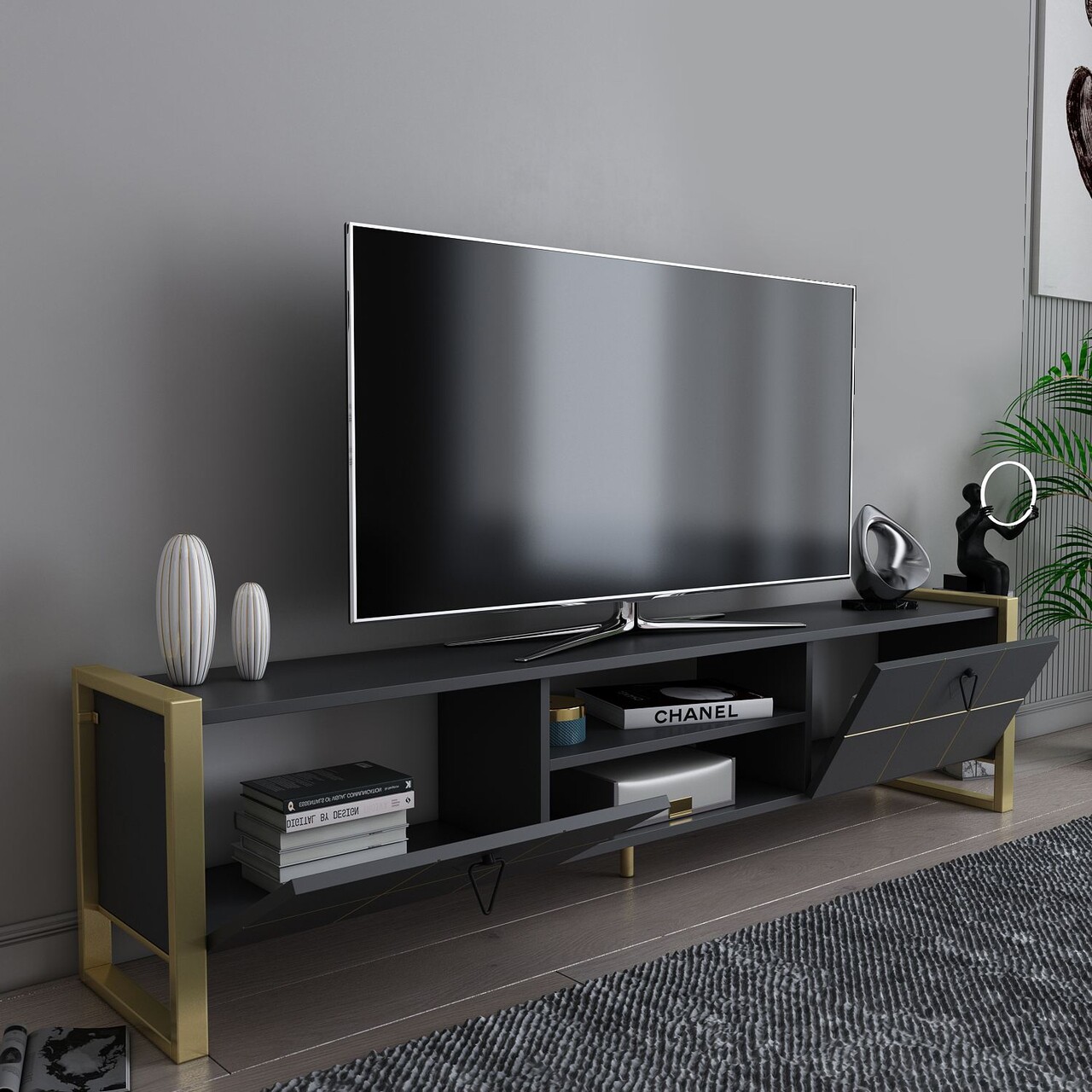 Comoda TV, Zena Home, Mila, 184x45x34 cm, PAL, Antracit / Aur