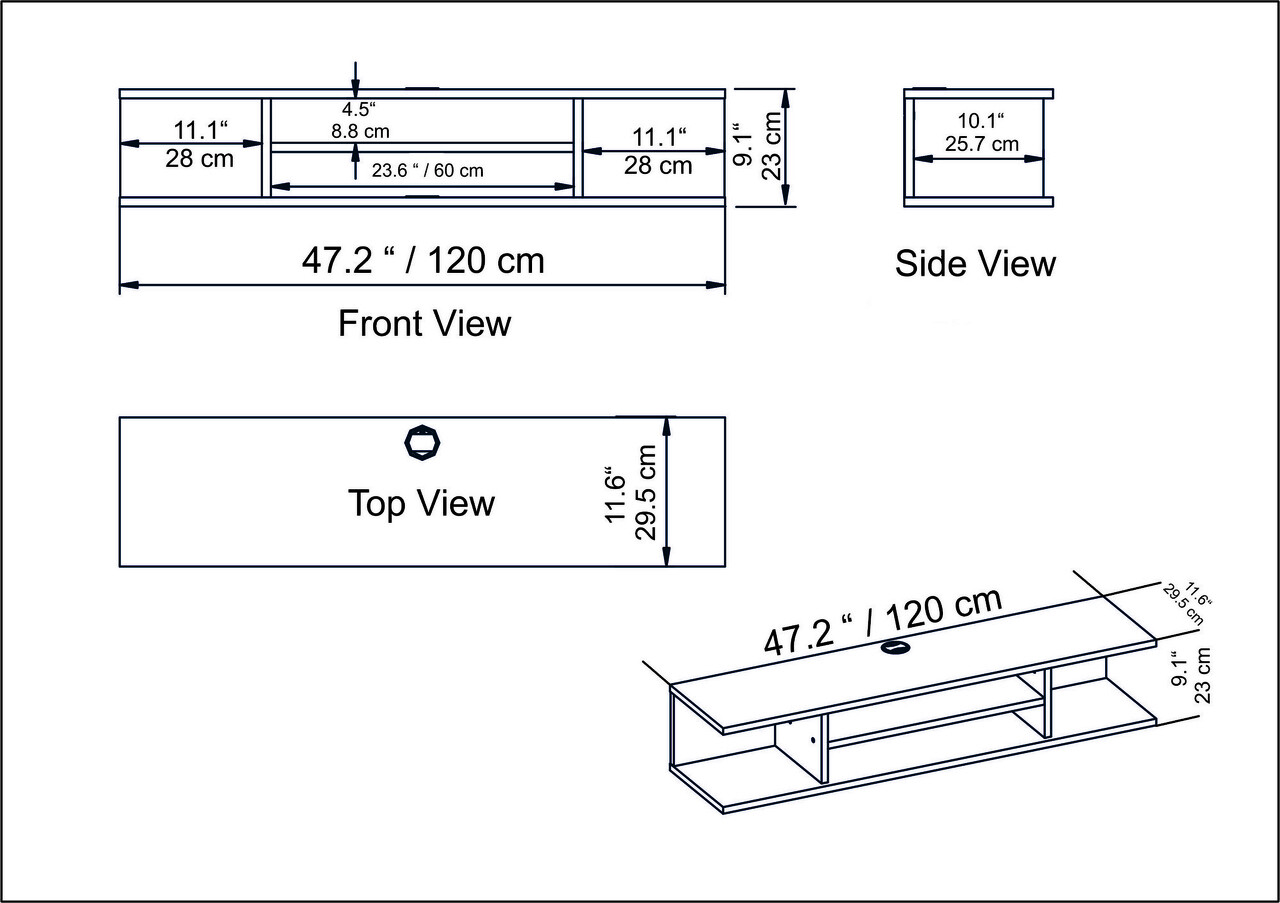 Dimensiunea suportului TV: Latime: 120 cm Inaltime: 23 cm Adancime: 29