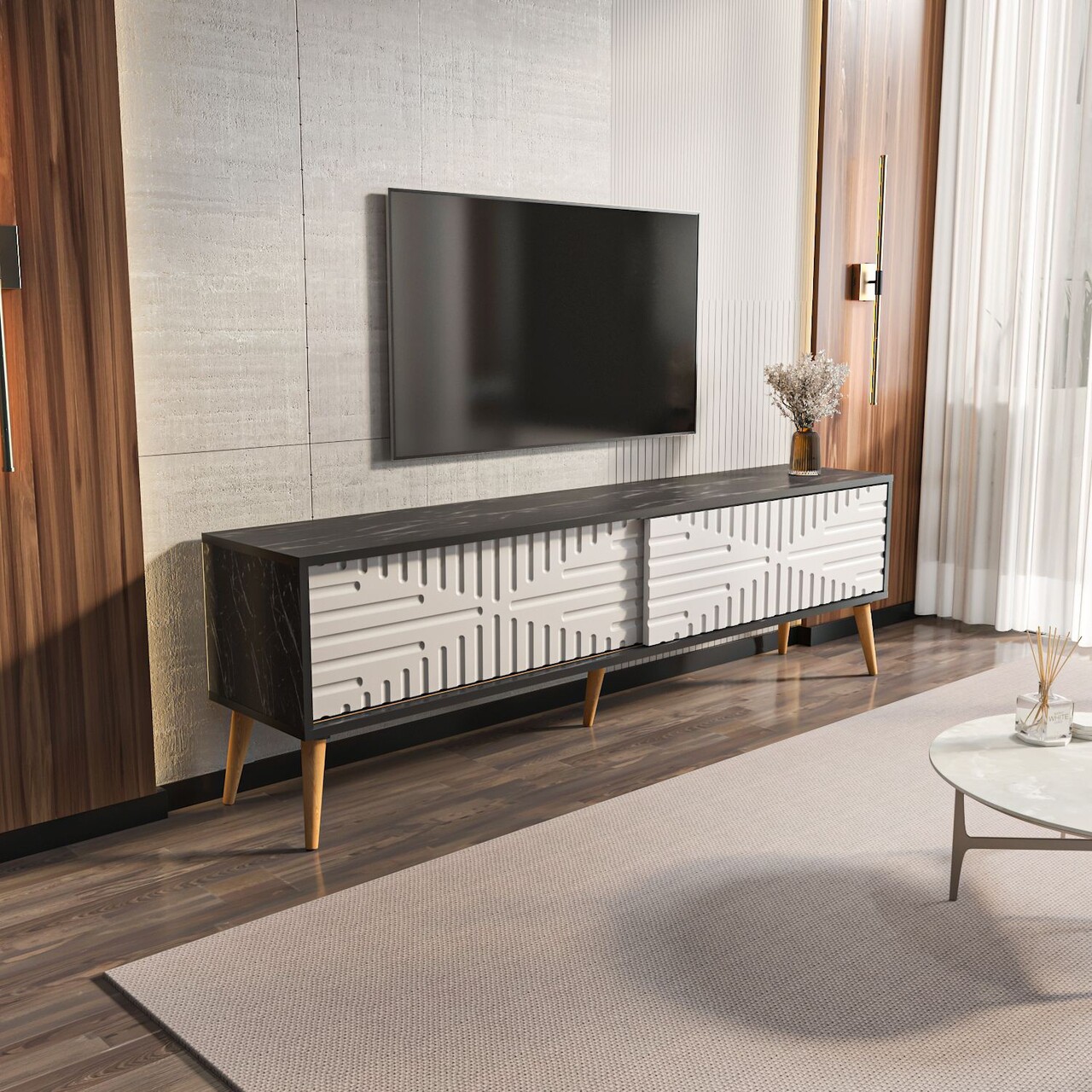 Comoda TV, Zena Home, Riso, 180x54x35 cm, PAL, Alb/Negru