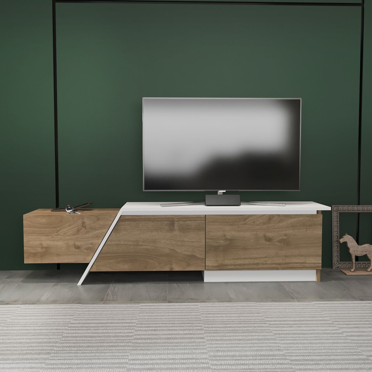 Comoda TV, Zena Home, Zonas, 180x28 cm, PAL, Nuc/Alb