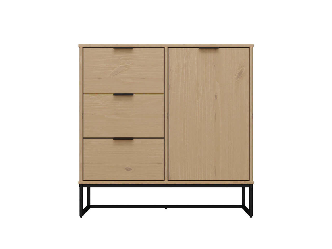 Bufetul VIVO este un plus practic pentru orice sufragerie sau living. Cu o usa si trei sertare, ofera spatiu amplu de depozitare pentru vase, tacamuri si multe altele. Culoarea calda a lemnului masiv de pin creeaza o atmosfera confortabila. Seria VIVO este cu adevarat speciala deoarece combina perfect natura si designul. Cu lemnul sau masiv de pin si textura unica, emana o frumusete naturala care te va incanta in fiecare zi. In acelasi timp, impresioneaza prin designul sau atemporal si cadrul robust din metal negru, conferindu-i un aspect modern. Prin urmare, seria VIVO este o piesa unica ce va oferi livingului tau o ambianta speciala.