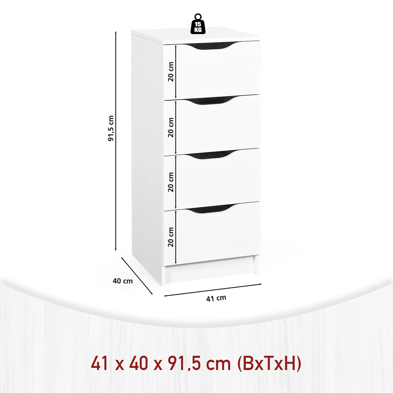 Aceasta comoda te ajuta sa-ti organizezi mai bine spatiul de depozitare. Fie ca ne referim la dormitor sau la sufragerie, comodele economisesc cu adevarat spatiu. Comoda Westphalen cu 4 sertare nu este doar atractiva vizual! Constructia sa robusta face din acest dulap o completare de lunga durata a colectiei tale de mobilier. Cele patru sertare ofera un spatiu amplu de depozitare pentru a-ti pastra obiectele preferate organizate. Cele patru sertare pe glisiere metalice cu glisare usoara ofera spatiu amplu de depozitare si acces facil la bunurile dumneavoastra. Manerele practice, incastrate in partea din fata a sertarelor, faciliteaza deschiderea acestora. Suprafata alba mata este melaminata. Suprafetele melaminate sunt rezistente la apa si grasime, ceea ce le face ideale pentru utilizarea zilnica. Comoda alba este fabricata din PAL plastifiat (KFB) si are un finisaj melaminat.