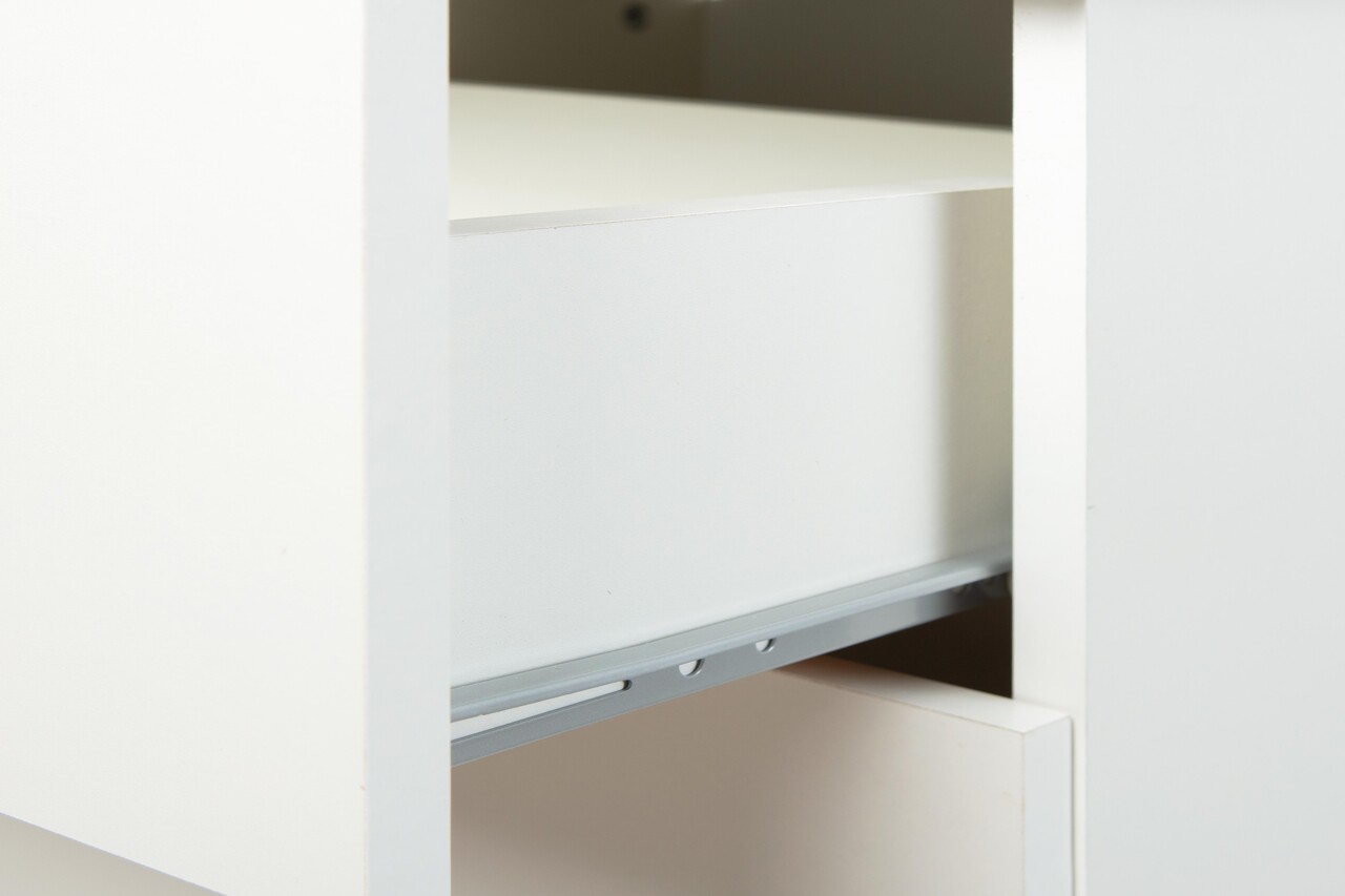 Comoda alba este fabricata din PAL plastifiat (KFB) si are un finisaj melaminat.
