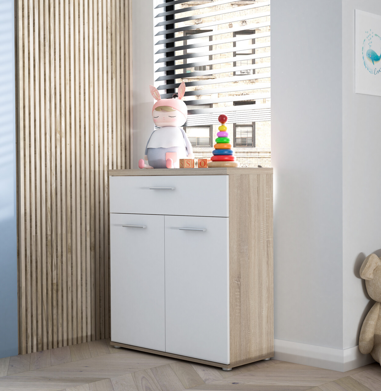 Comoda Wijk, Bedora, 79.9x34.8x93 cm, PAL/plastic, sonoma/alb