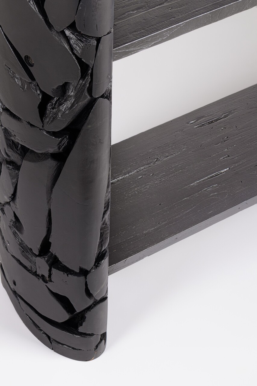 Consola Arwood, Bizzotto, 156x36x110 cm, lemn de tec reciclat, produs unicat, negru