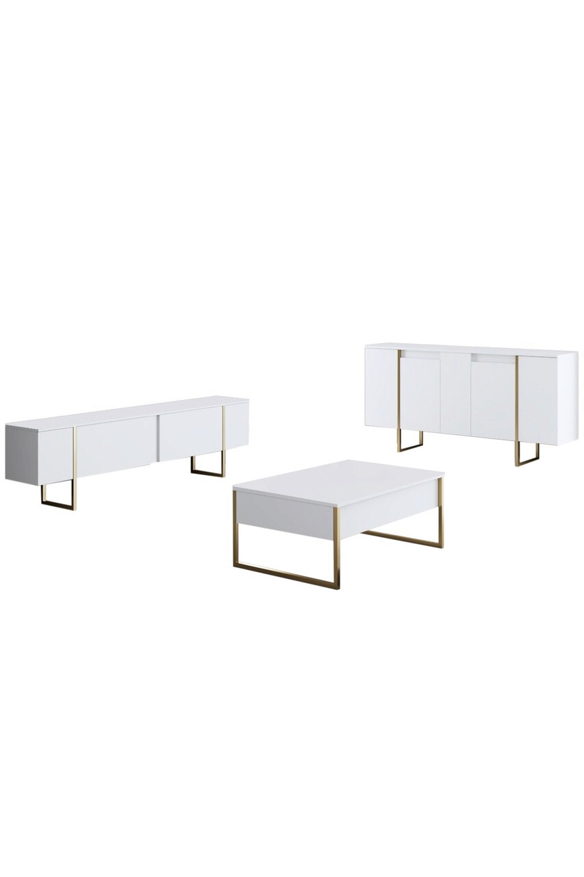 Consola, Bexley, Luxe, 160x35x80 cm, PAL, Alb/Auriu