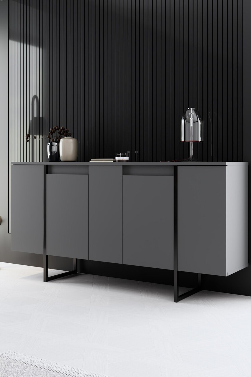 Consola, Bexley, Luxe, 160x35x80 cm, PAL, Antracit / Negru