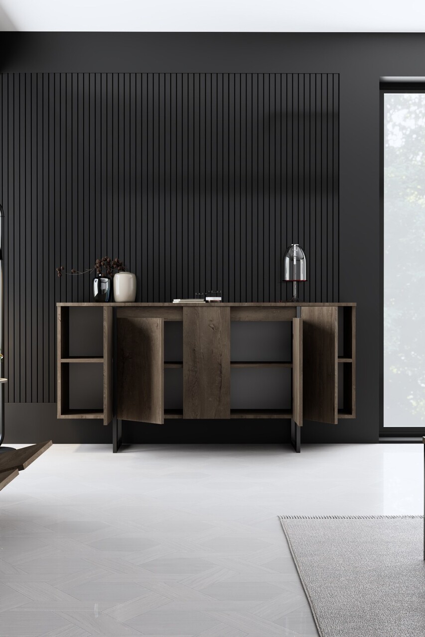 Consola, Bexley, Luxe, 160x35x80 cm, PAL, Nuc / Negru