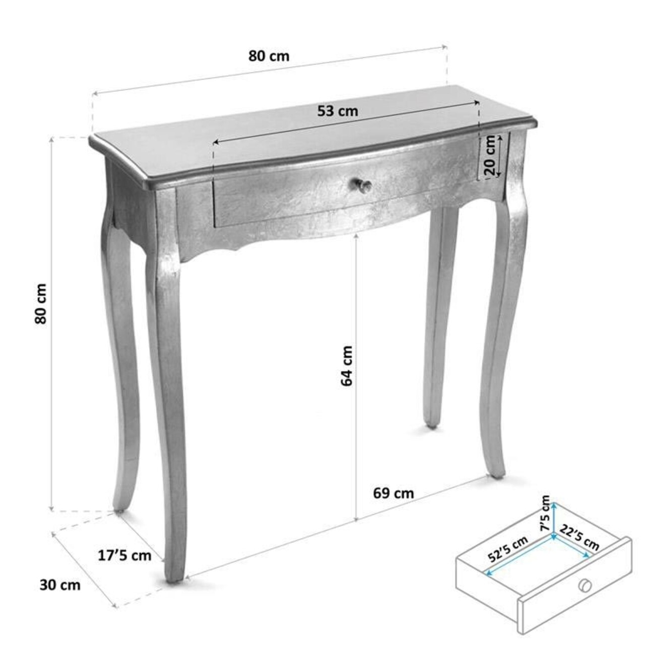 Consola cu 1 sertar Cagliari Silver, Versa, 80x30x80 cm, lemn de brad