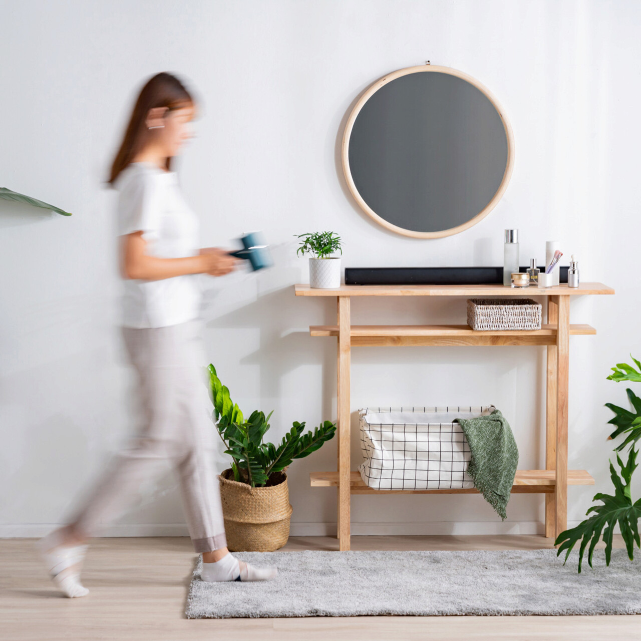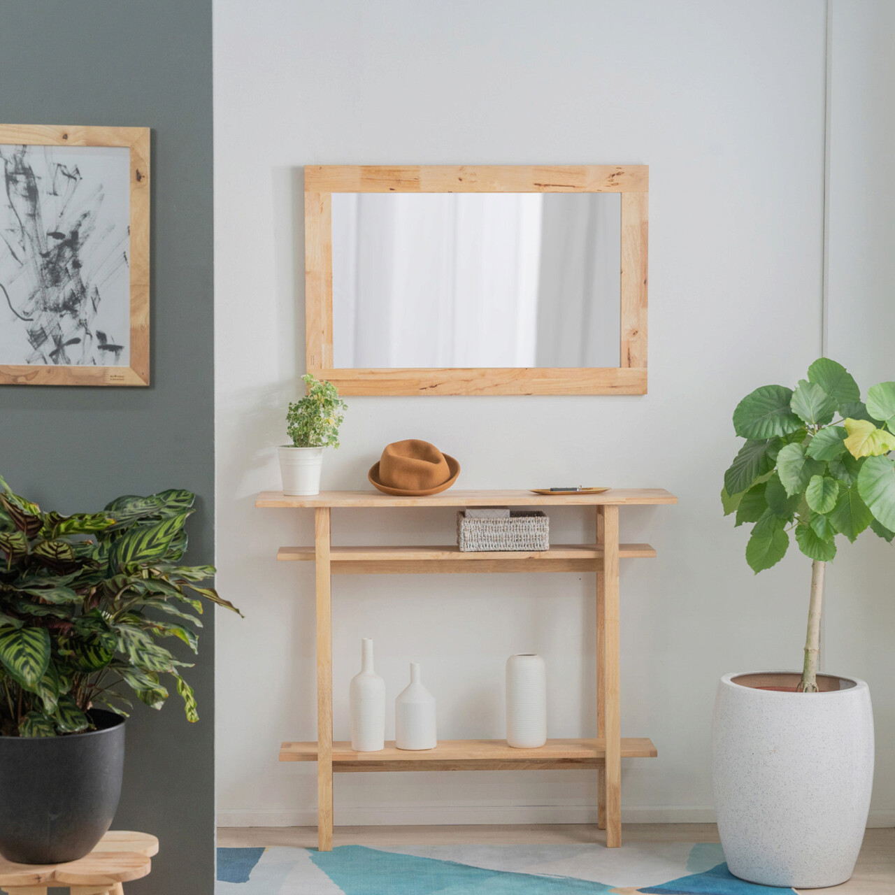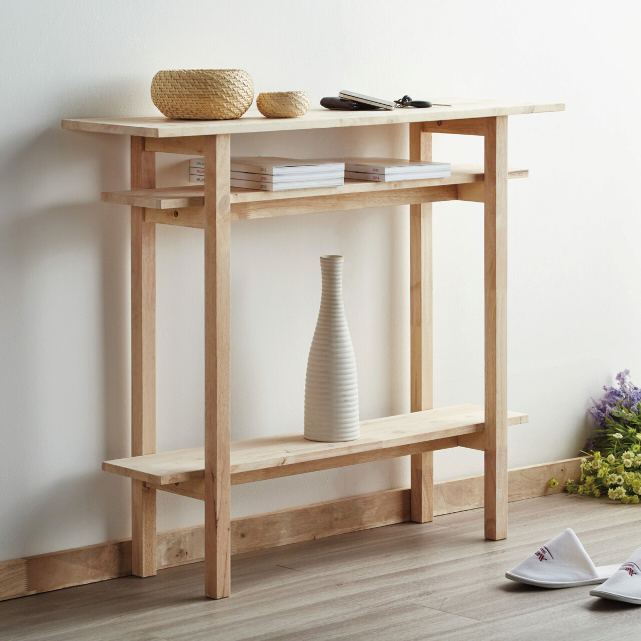 Consola cu 2 rafturi Langi, Homla, 107x30x90 cm, lemn, natur