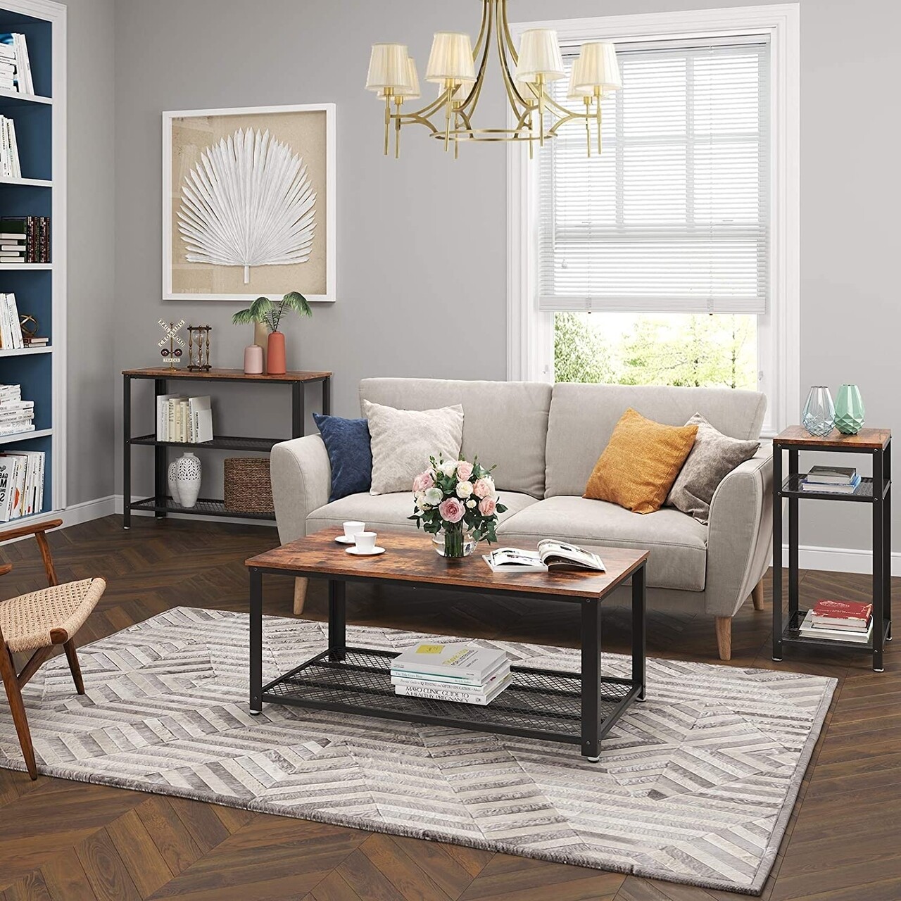 Consola cu 2 rafturi, Vasagle, 101.5 x 35 x 80 cm, fier/PAL, maro rustic