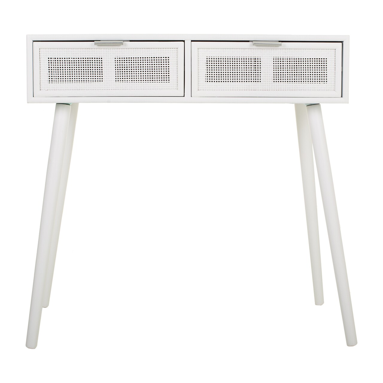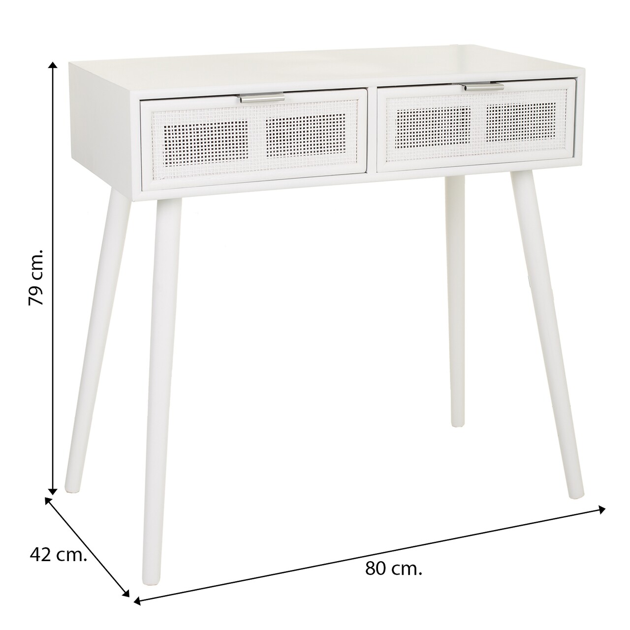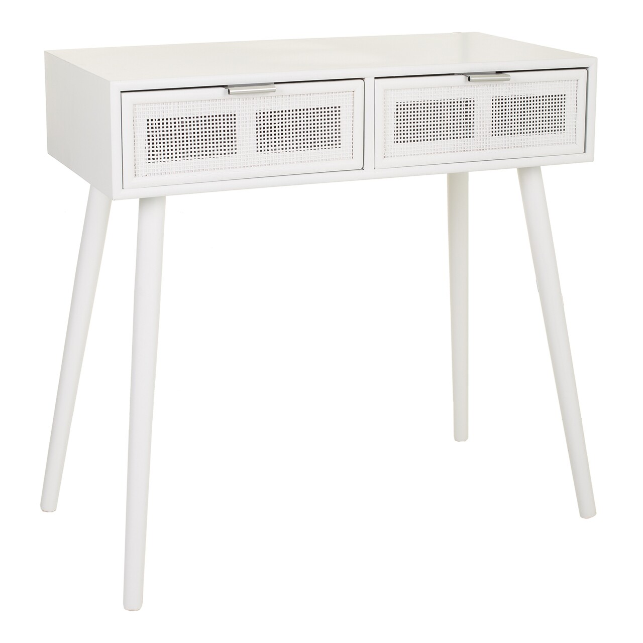 Consola cu 2 sertare Creaciones Meng, 82x42x79 cm, MDF/bambus, alb/argintiu