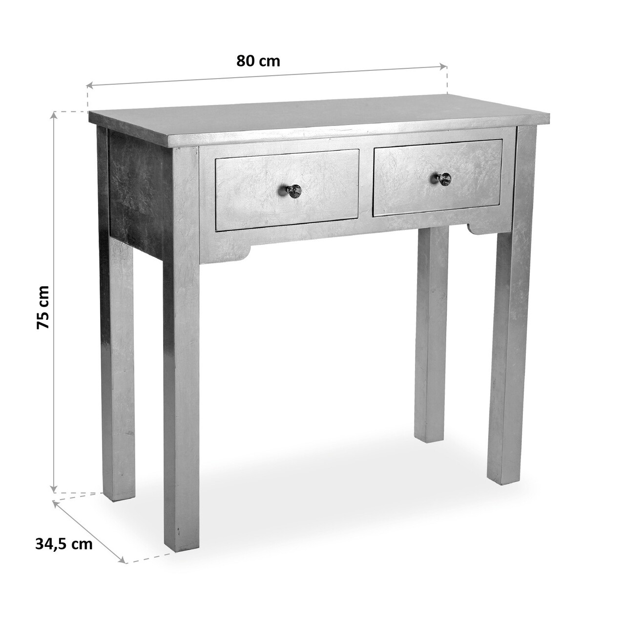 Consola cu 2 sertare Frye, Versa, 80 x 34.5 x 75 cm, lemn, argintiu