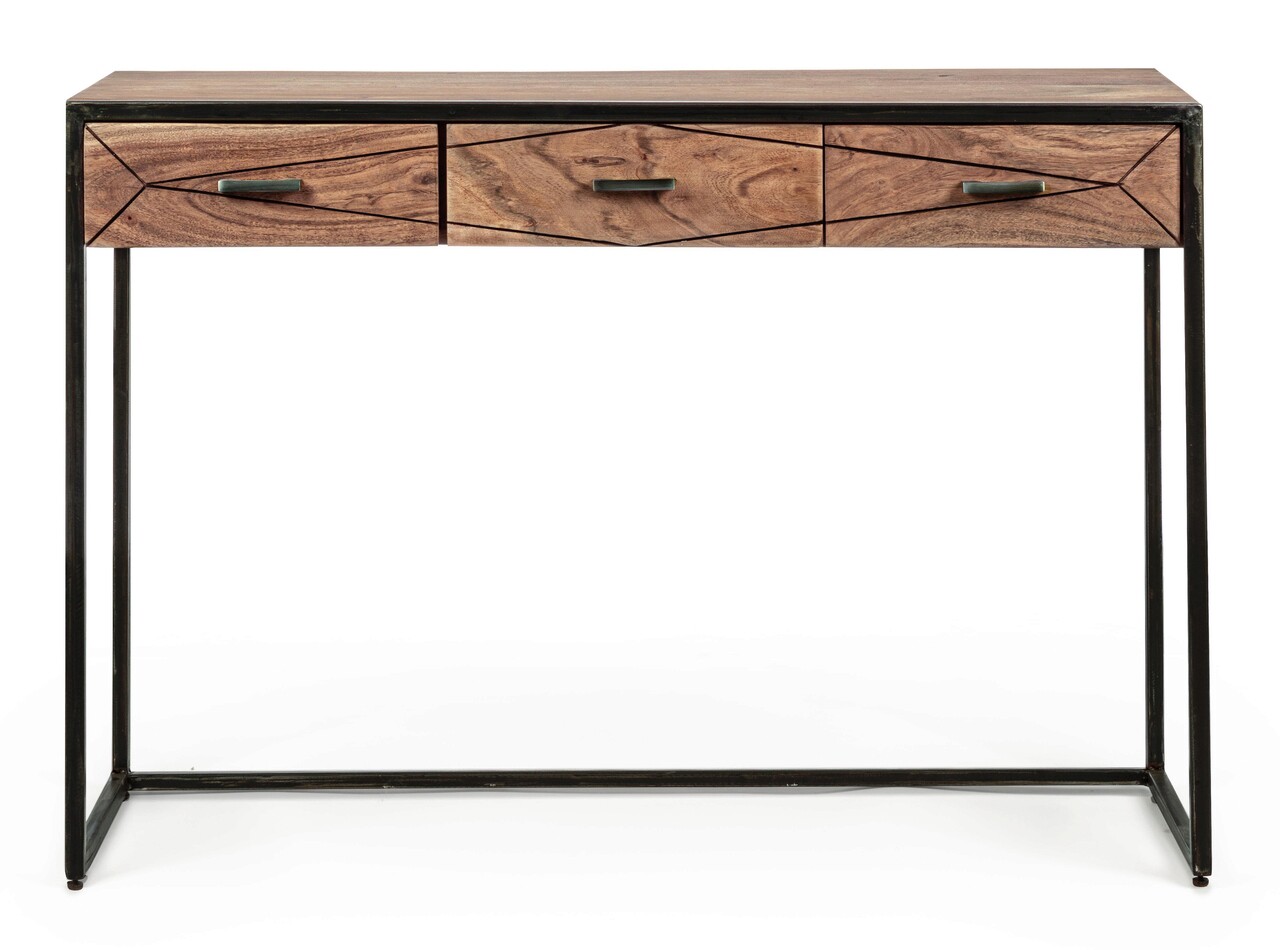 Consola cu 3 sertare Egon, Bizzotto, 115x35x80 cm, otel/lemn de salcam