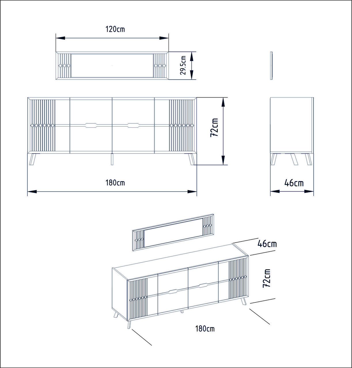 Dimensiunea consolei: Latime: 180 cm Inaltime: 72 cm Adancime: 46 cm