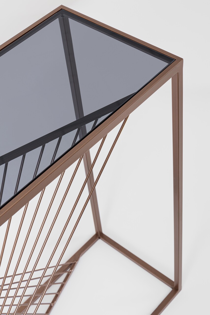 Consola Espiral Coin, Bizzotto, 107x30.5x79 cm, otel/sticla temperata, maro coin