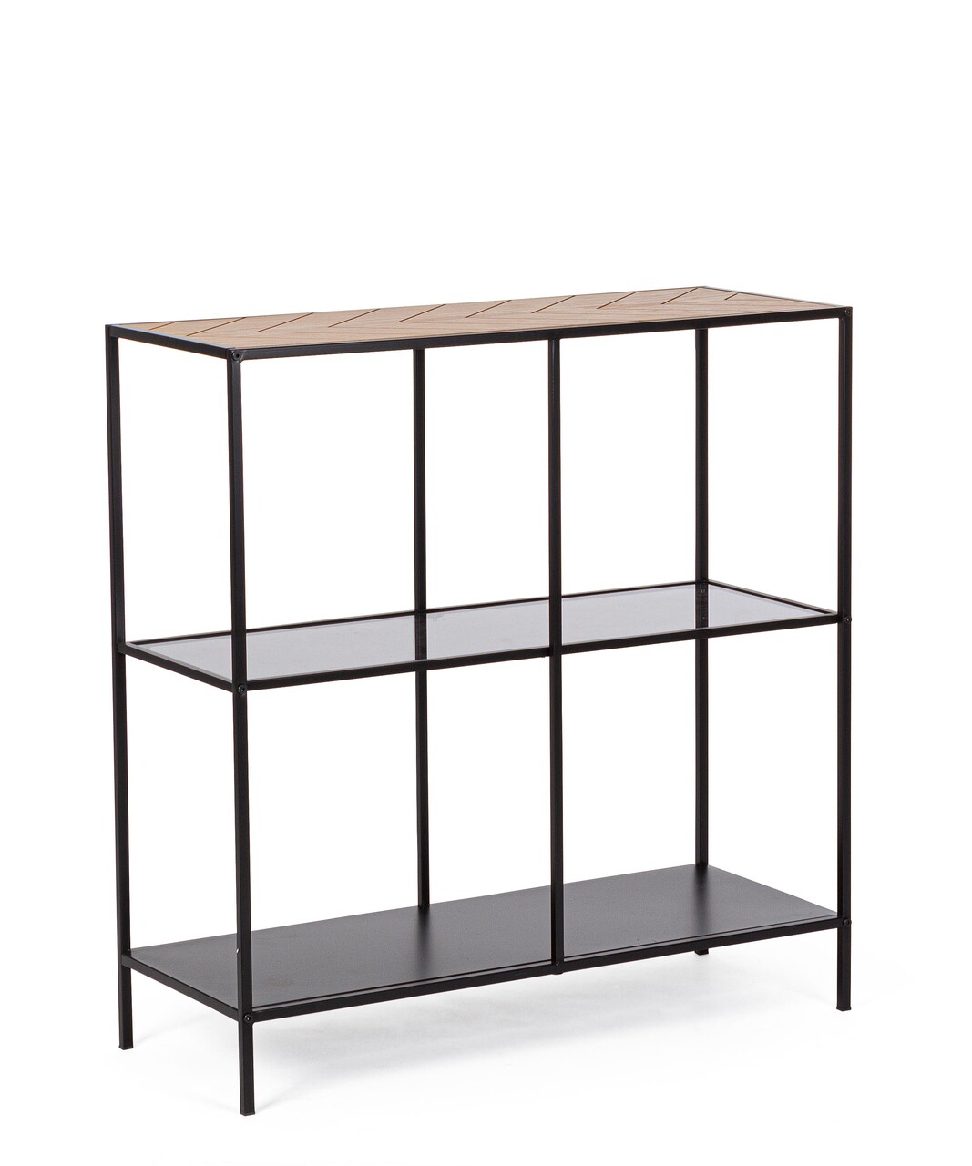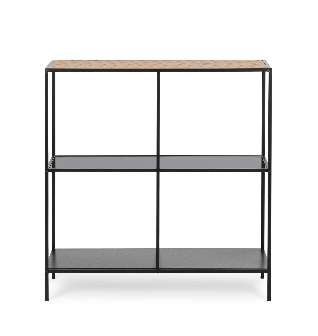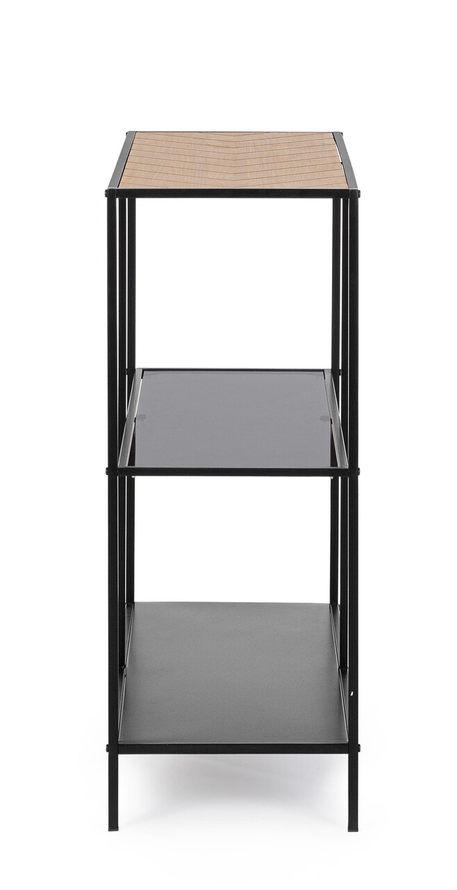 Consola Haldor, Bizzotto, 82x33x85 cm, otel/MDF/sticla temperata, negru/natural
