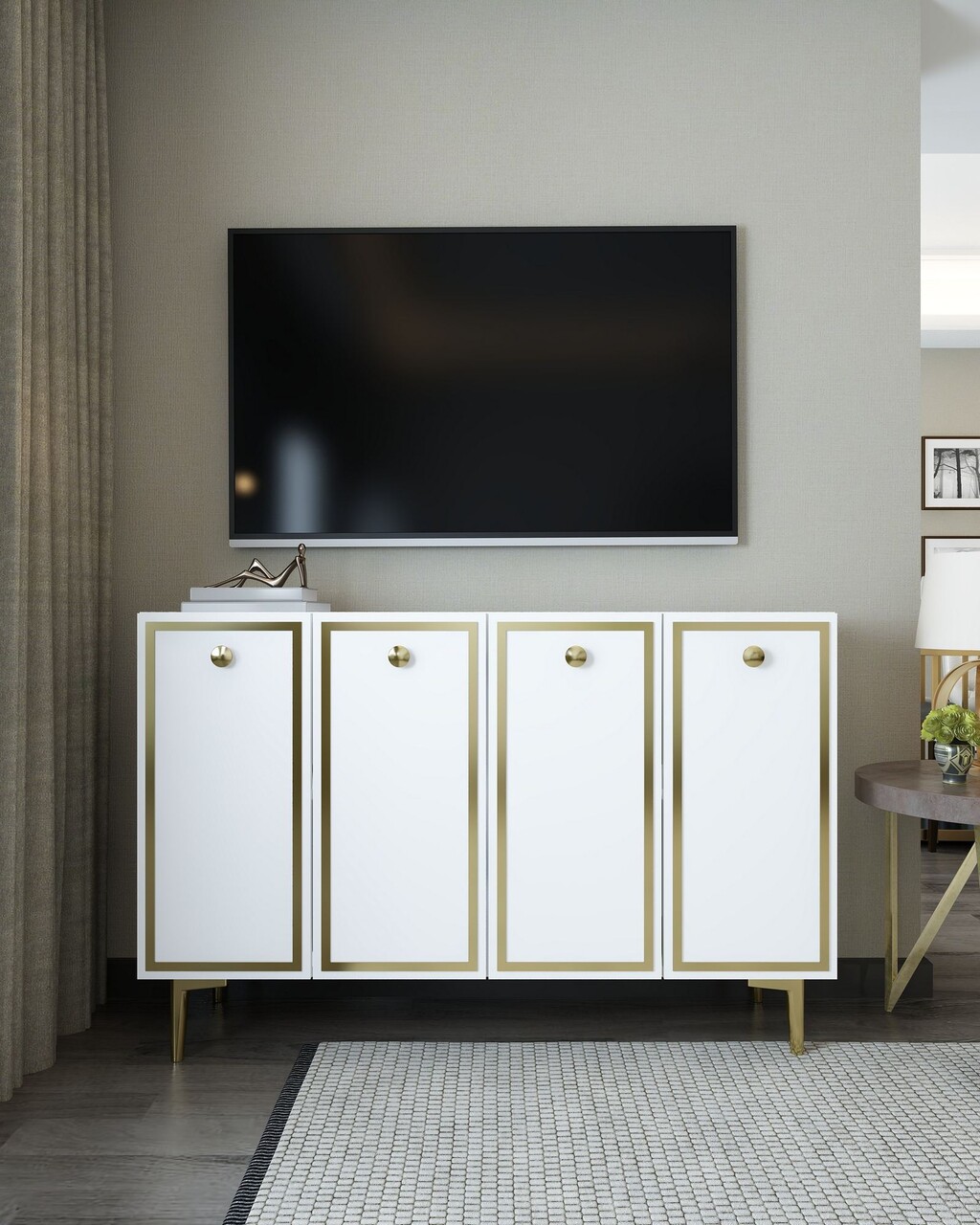 Consola, Hanah Home, 8161KM-1, 120x75x29.6 cm, PAL , Alb/Auriu