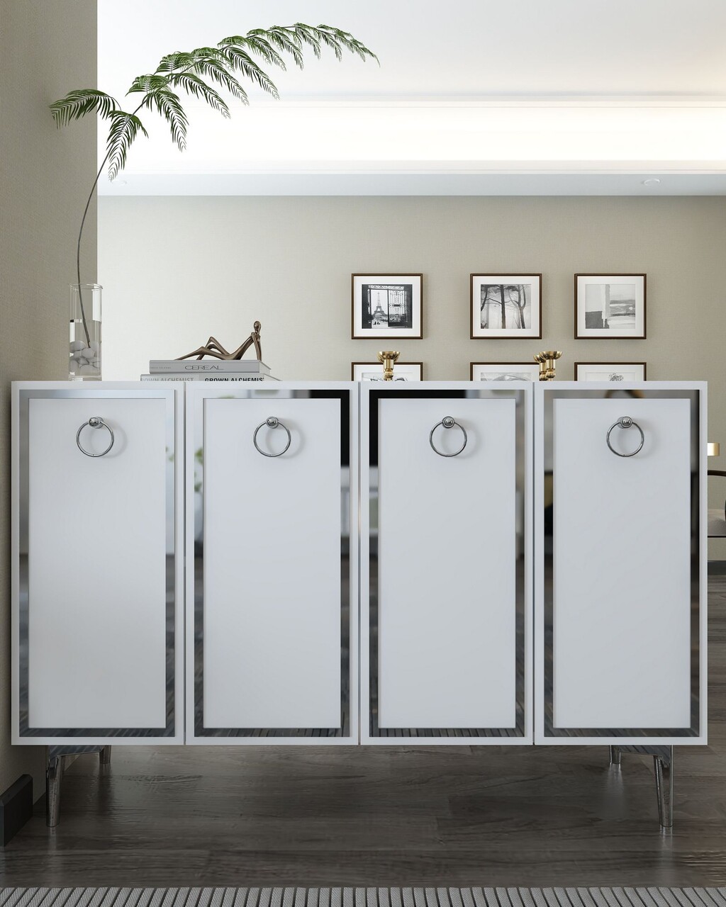 Consola, Hanah Home, 8162KM-1, 120x75x29.6 cm, PAL , Alb / Argintiu