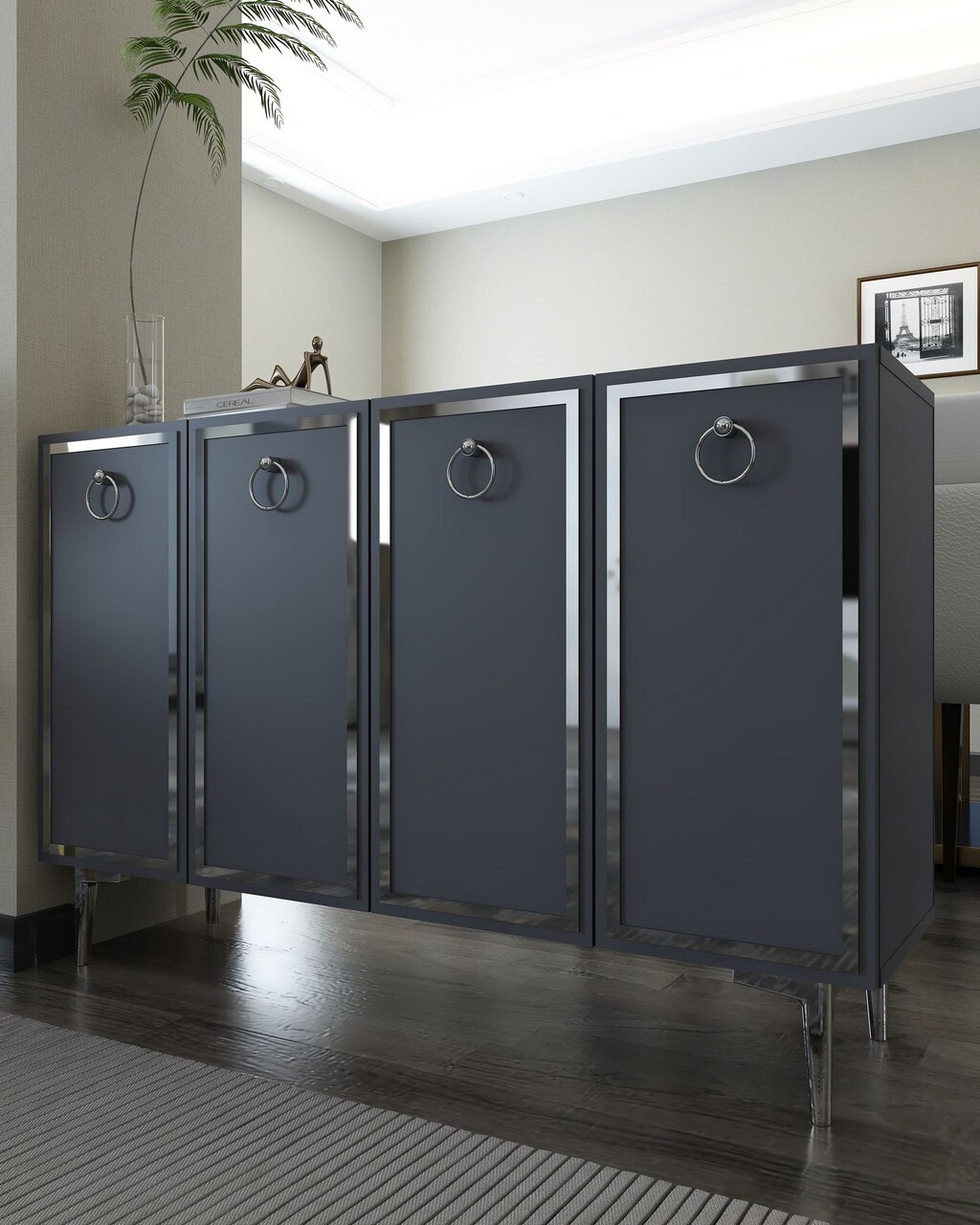 Consola, Hanah Home, 8162KM-1, 120x75x29.6 cm, PAL , Antracit / Argintiu