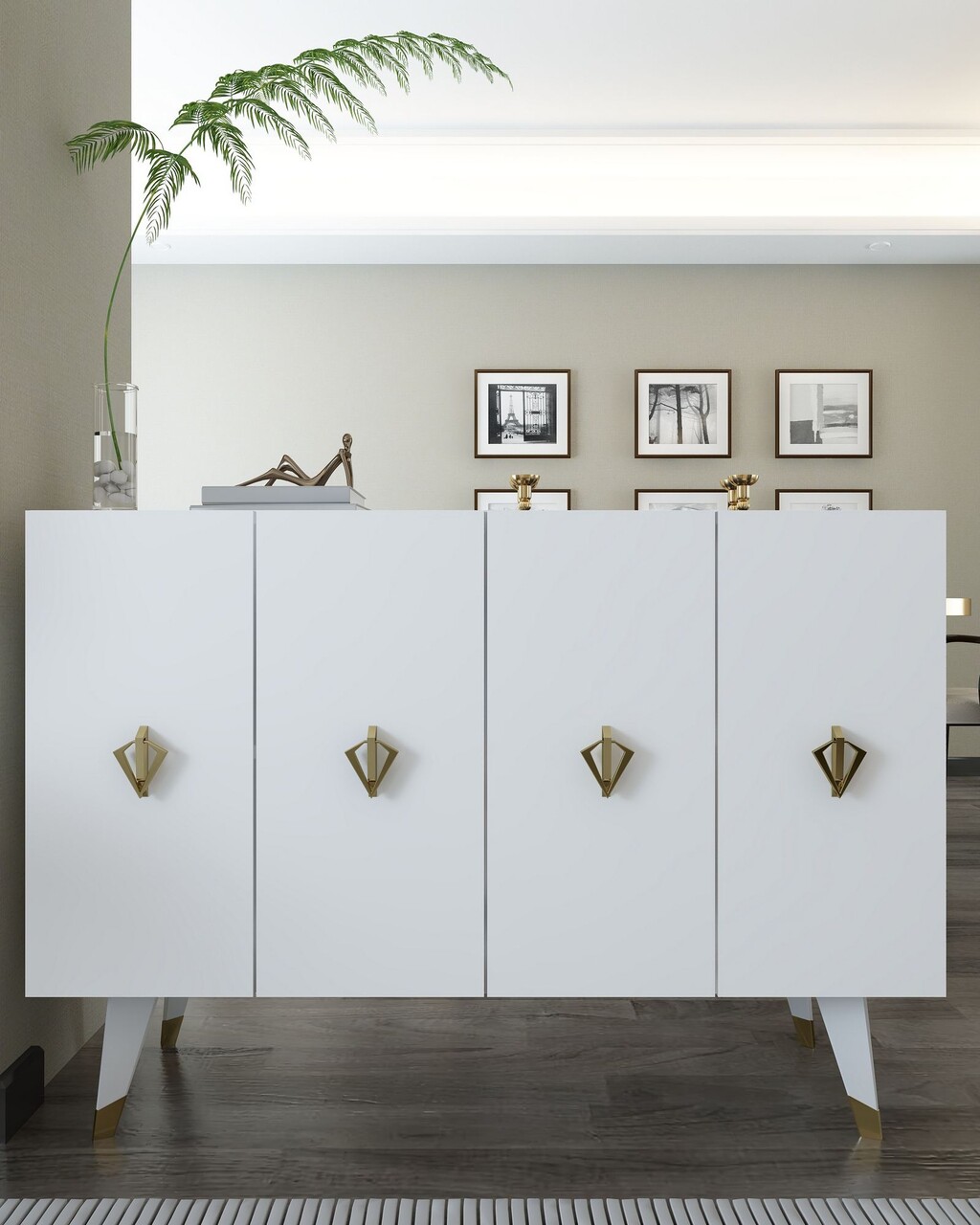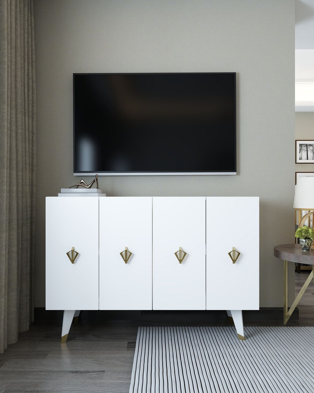 Consola, Hanah Home, 8163KM-32, 120x80x29.6 cm, PAL , Alb/Auriu