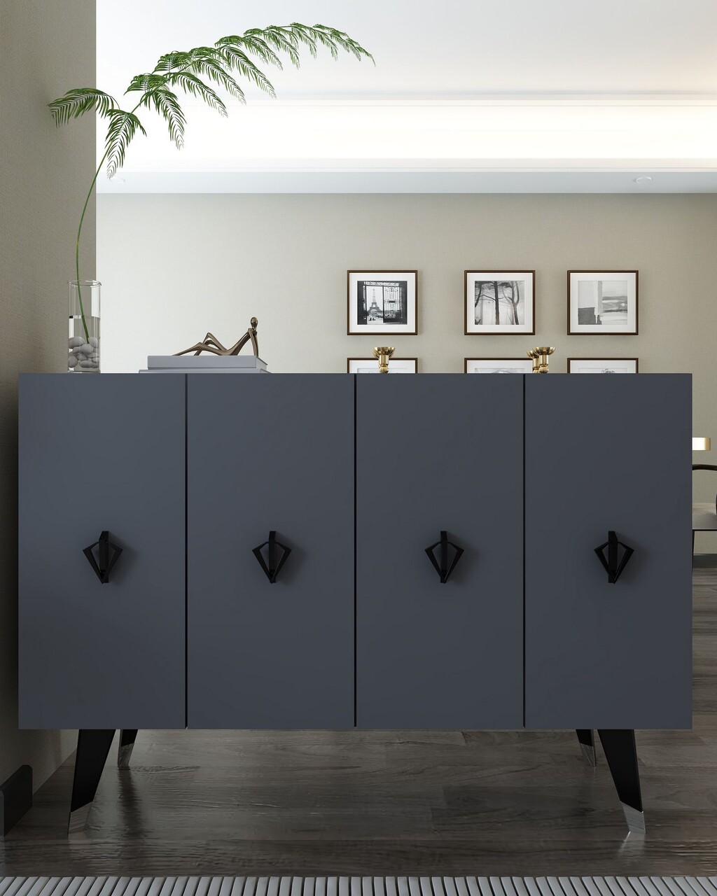 Consola, Hanah Home, 8166KM-32, 120x80x29.6 cm, PAL , Anthracite / Black / Silver
