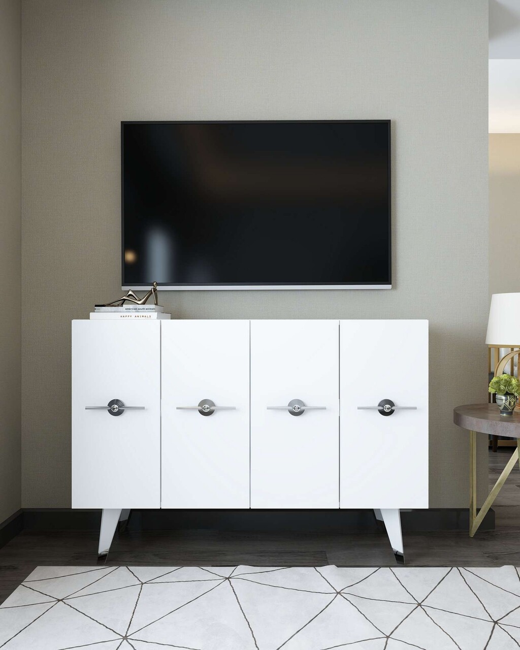 Consola, Hanah Home, 8169KM-32, 120x80x29.6 cm, PAL , Alb / Argintiu