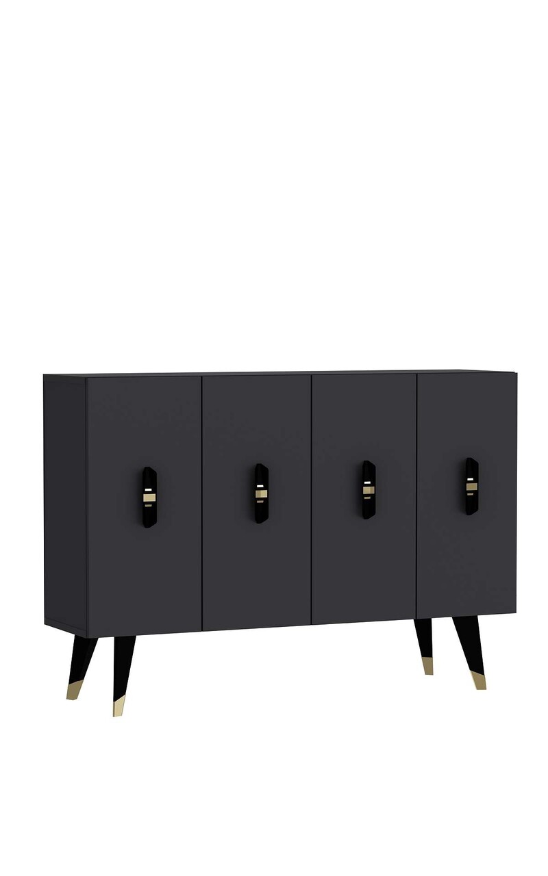 Consola, Hanah Home, 8170KM-32, 120x80x29.6 cm, PAL , Antracit / Negru / Auriu