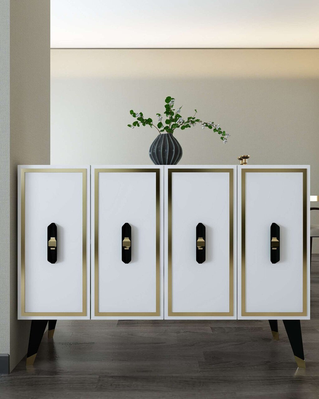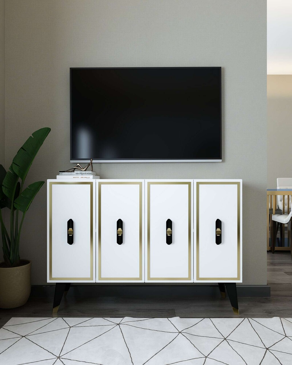 Consola, Hanah Home, 8171KM-32, 120x80x29.6 cm, PAL , Alb / Negru / Auriu