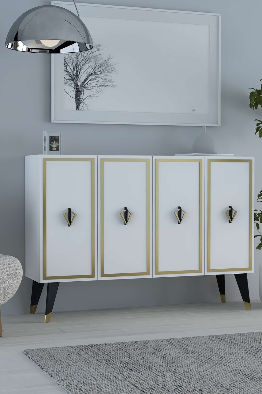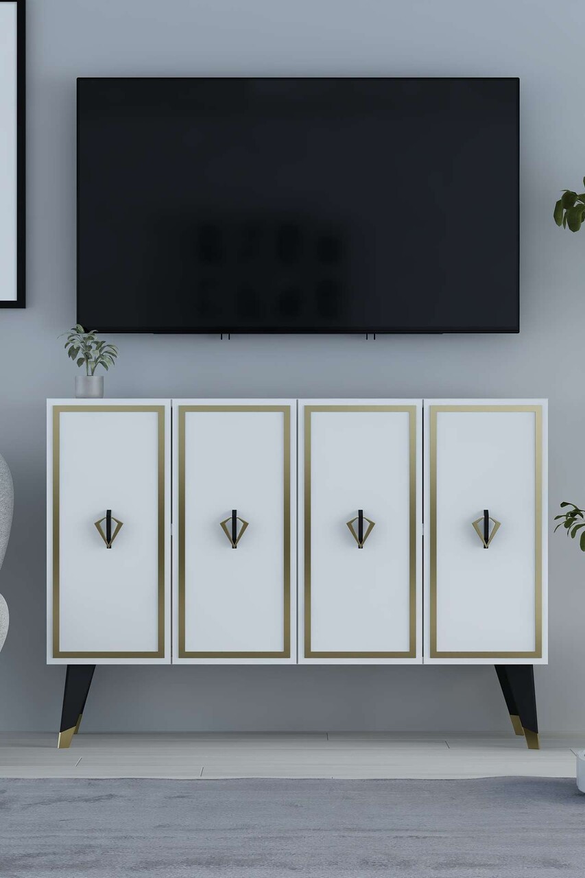 Consola, Hanah Home, 8175KM-32, 120x80x29.6 cm, PAL , Alb / Negru / Auriu