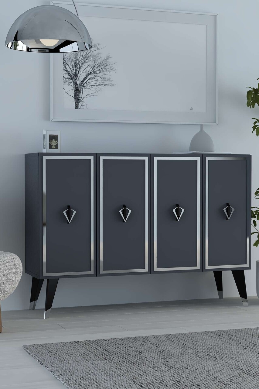 Consola, Hanah Home, 8175KM-32, 120x80x29.6 cm, PAL , Anthracite / Black / Silver