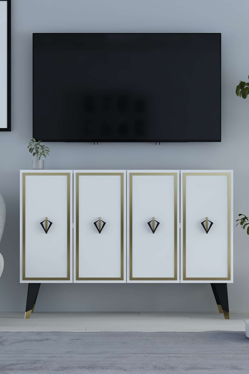 Consola, Hanah Home, 8176KM-32, 120x80x29.6 cm, PAL , Alb / Negru / Auriu