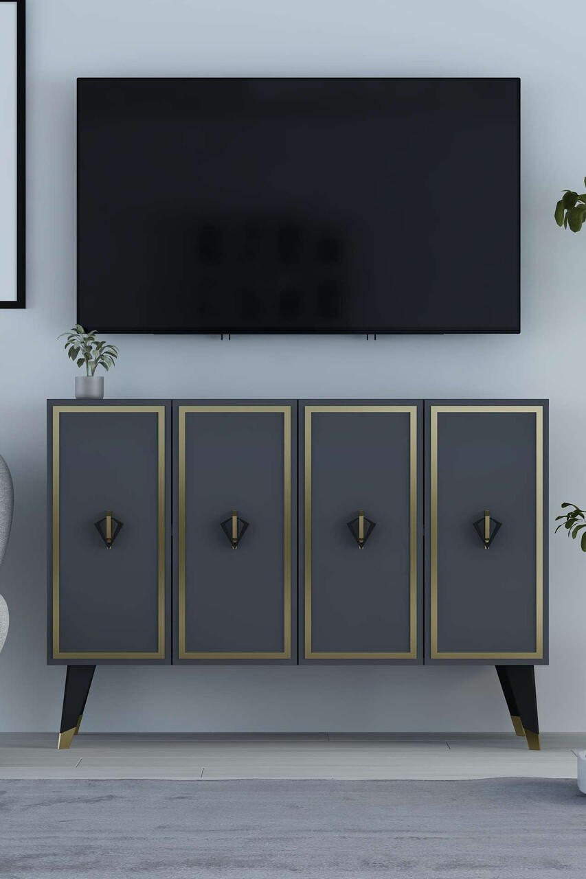Consola, Hanah Home, 8176KM-32, 120x80x29.6 cm, PAL , Antracit / Negru / Auriu